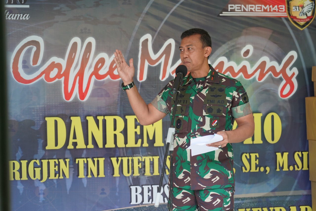 Rusmin menyampaikan kegiatan Cofee Morning yang dilaksakan oleh Korem 143/HO untuk bersilahturahmi dan juga untuk mempererat sinergitas anatara Korem dengan Insan Pers sekota Kendari