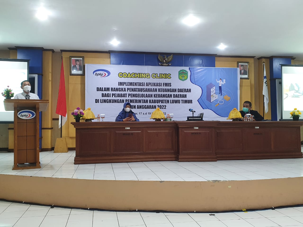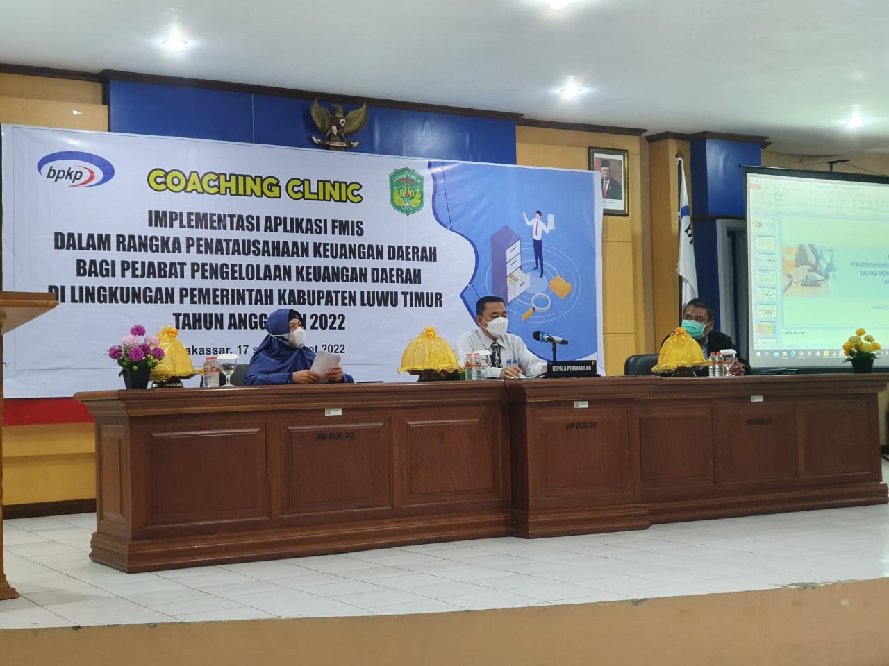 Luwu Timur,Chaneltimur.Com – Dalam rangka memberikan gambaran kondisi obyektif pelaksanaan penatausahaan keuangan yang merupakan pelaksanaan tugas Pengelola Keuangan untuk pertanggungjawaban keuangan sekaligus meningkatkan SDM dalam berbenah dan berkonsentrasi mengatasi permasalahan yang terkait pertanggungjawaban keuangan, maka Pemerintah Kabupaten Luwu Timur, melalui Badan Keuangan dan Aset Daerah (BKAD) bekerjasama dengan BPKP Perwakilan Sulawesi Selatan menggelar Coaching Clinic Pembukuan dan Penatausahaan Keuangan Pada FIMS (Simda Berbasis Web) Bagi Pengelola Keuangan BKAD, Bendahara dan PPK- SKPD se Kab. Luwu Timur meliputi, Pembukuan, Penatausahaan Pendapatan dan Belanja, yang berlangsung di Aula Kantor Perwakilan BPKP Sulsel, Kamis (17/03/2022).