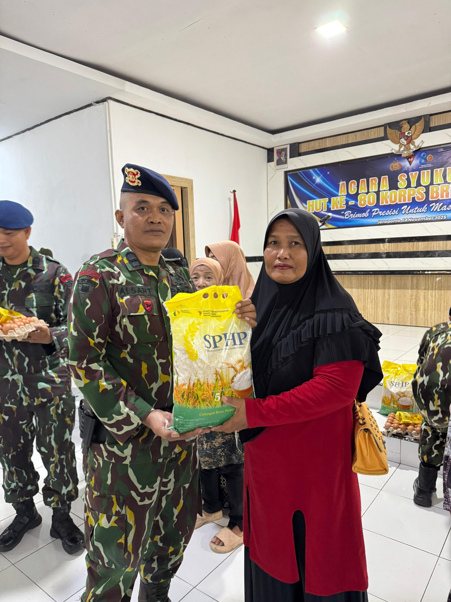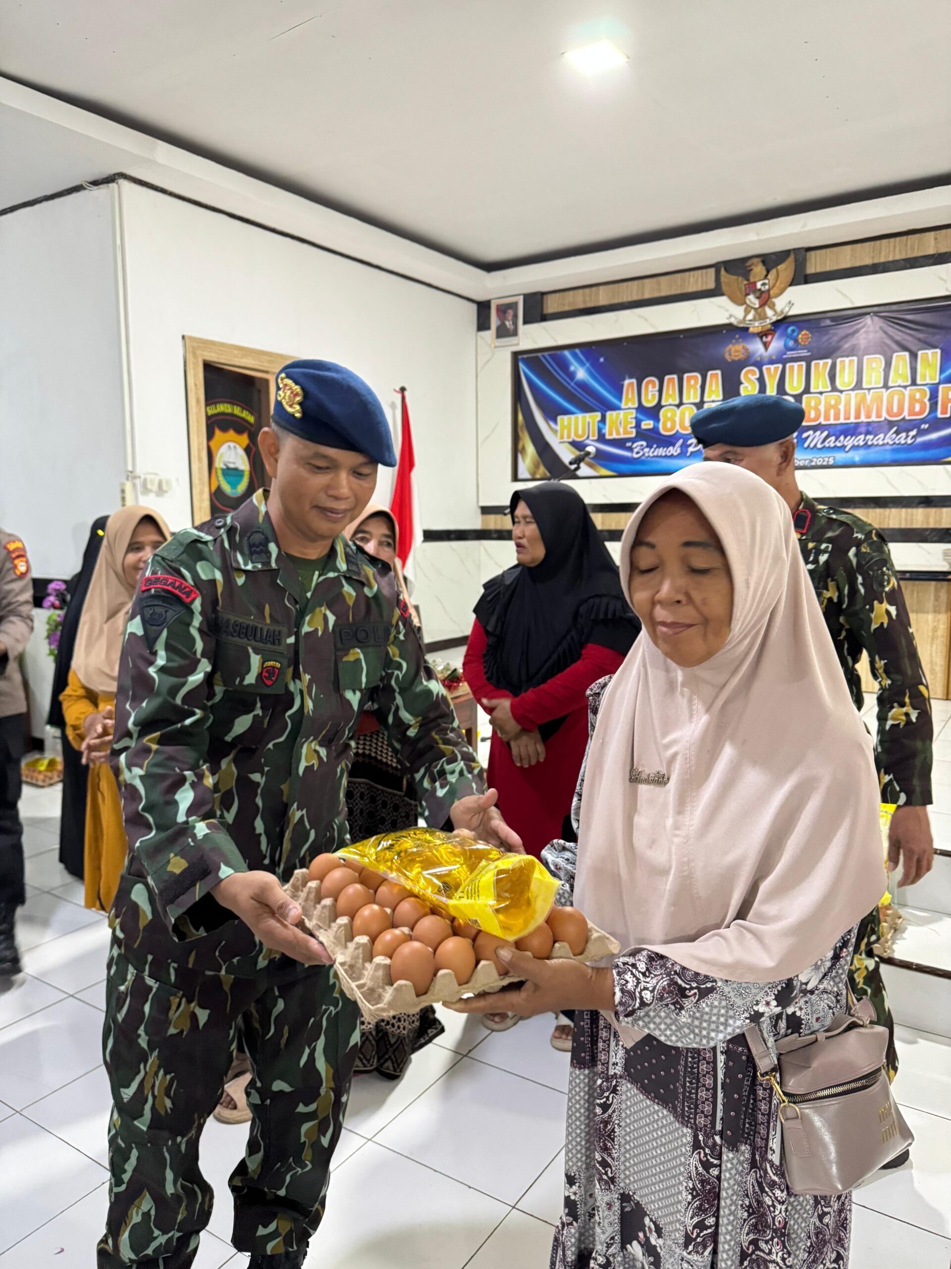 “Syukuran ini kita wujudkan dengan rasa syukur atas segala pengabdian Brimob Polri. Melalui rangkaian penyerahan sembako ini, kita ingin berbagi kebahagiaan dan meringankan beban masyarakat, khususnya di sekitar kita. Ini adalah wujud nyata bahwa Brimob hadir untuk rakyat,” ujar AKBP Widi Setiawan.