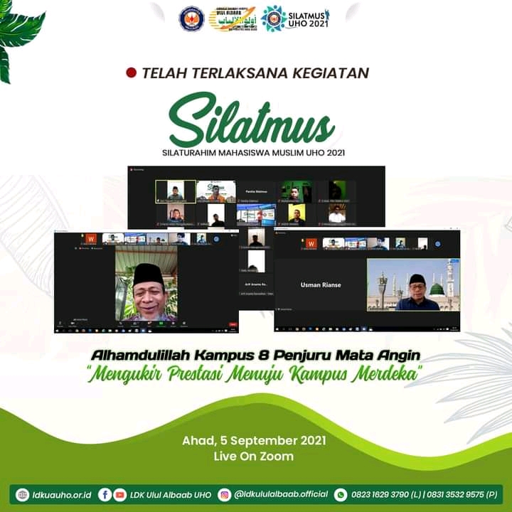 Meski masih dalam situasi Pandemi, tidak menjadi penghalang untuk terselenggaranya kegiatan ini, Dengan Mengangkat Tema “Mengukir Prestasi Menuju Kampus Merdeka”, Silatmus UHO 2021 dilaksanakan secara Virtual Via Zoom, Ahad (05/09/2021).