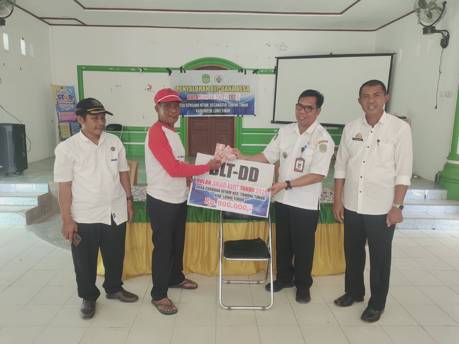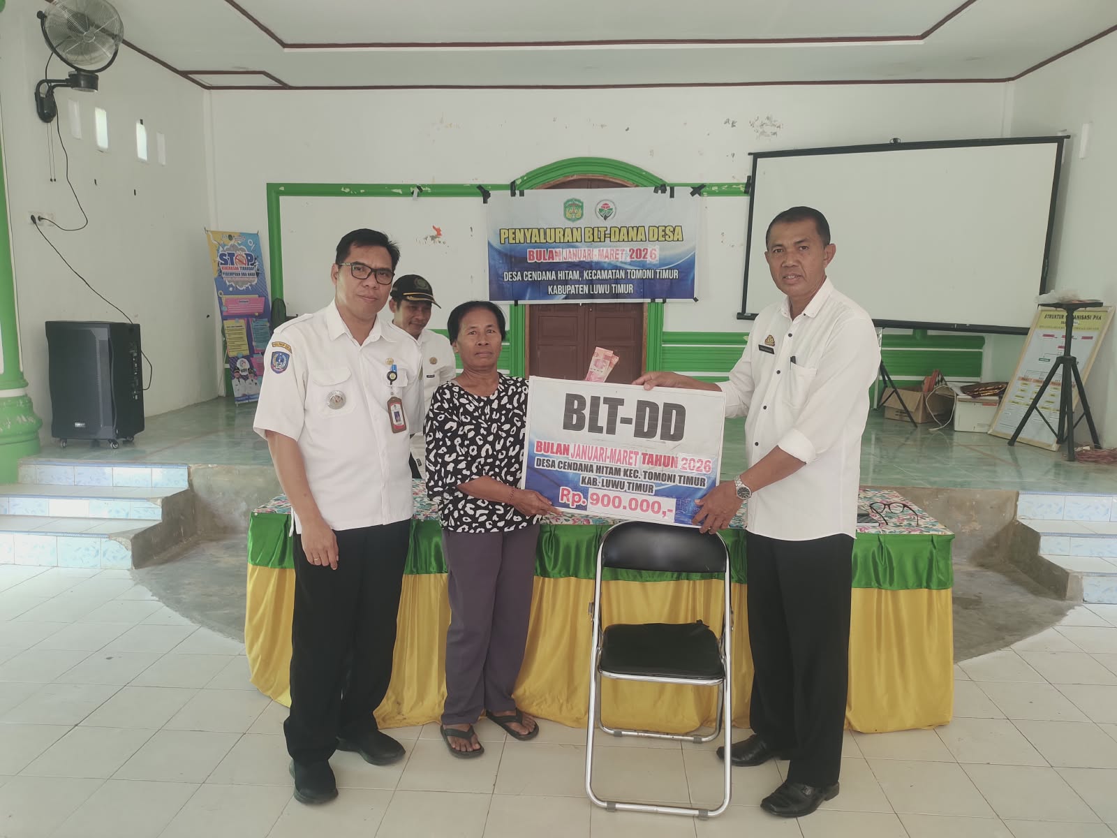 Luwu Timur, Chaneltimur.com – Pemerintah Desa Cendana Hitam, Kecamatan Tomoni Timur, Kabupaten Luwu Timur, menyalurkan Bantuan Langsung Tunai Dana Desa (BLT DD) Tahap I untuk tahun anggaran 2026, Rabu (29/4/2026). Penyaluran bantuan ini menyasar keluarga kategori miskin ekstrem guna menjaga daya beli masyarakat di tingkat desa.