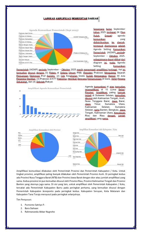 Laporan tersebut merupakan rekapitulasi aktivitas komunikasi dan publikasi yang dilakukan oleh pemerintah daerah di seluruh Indonesia, baik tingkat provinsi maupun kabupaten/kota. Tujuan dari laporan ini adalah untuk mengukur sejauh mana pemerintah daerah berperan aktif dalam menyebarluaskan informasi dan pesan-pesan strategis pemerintah pusat kepada masyarakat melalui berbagai kanal komunikasi, seperti situs web resmi, media sosial, serta media berita.