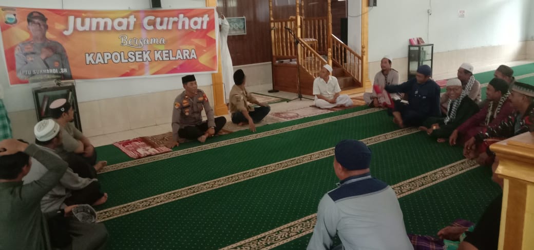 Kapolsek Kelara Iptu Sukhardi menyampaikan bahwa program Jumat Curhat merupakan wadah mendengar segala aspirasi, keluhan dan permasalahan masyarakat yang dapat disampaikan kepada polri, termasuk menyampaikan pencerahan tentang hukum