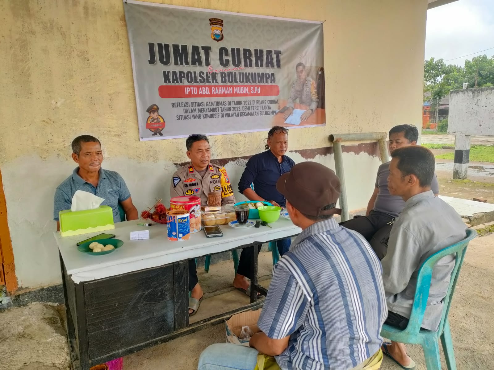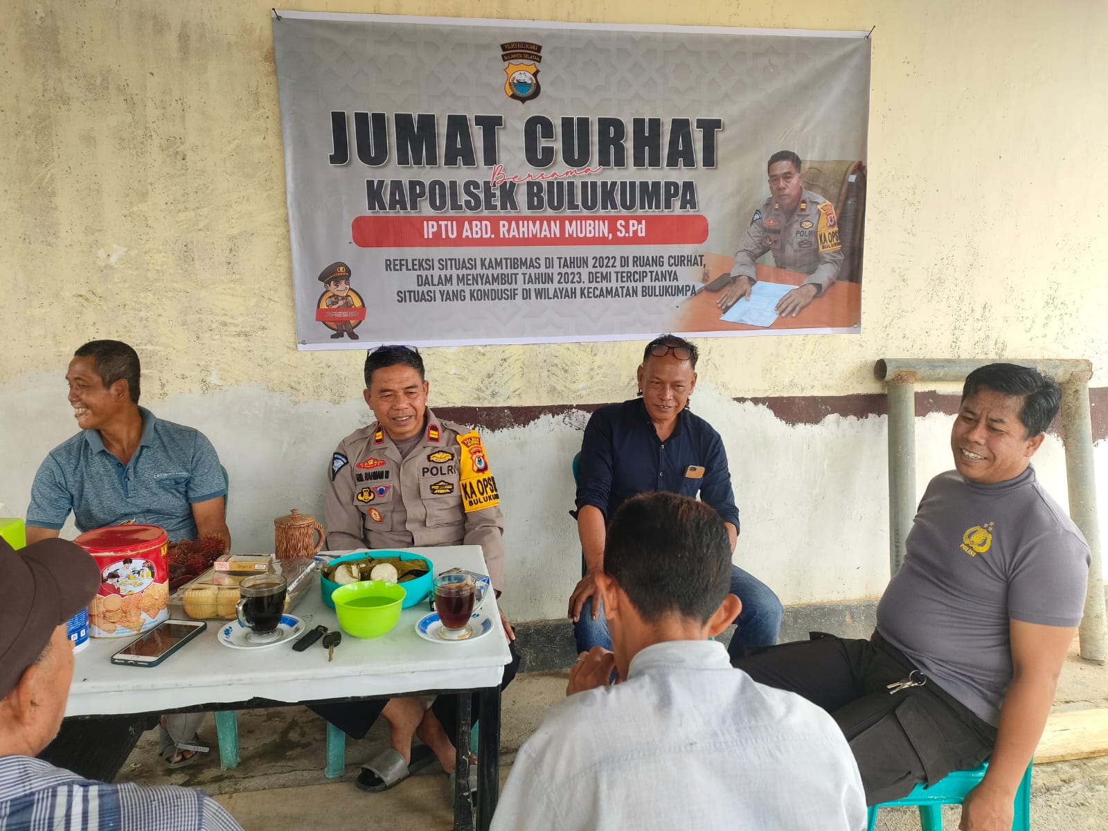 Dalam rangka meningkatkan pelayanan Polri kepada masyarakat, Kapolsek Bulukumpa IPTU ABD RAHMAN MUBIN, S.Pd menggelar kegiatan Jum’at Curhat dengan Tema “Baku Dapa Ba Cerita”