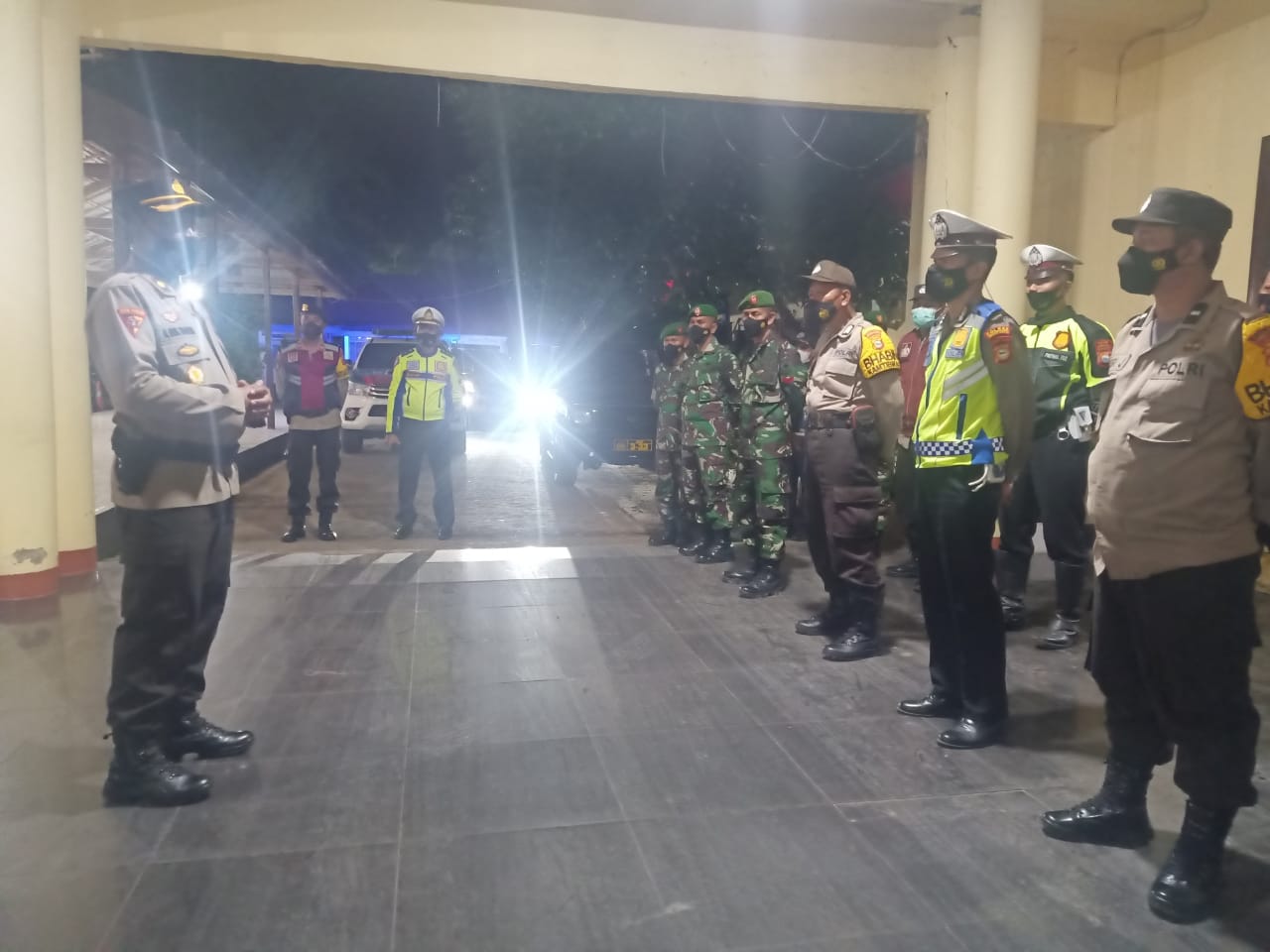 Personil gabungan dari polres jeneponto,TNI kodim 1425 jeneponto,satpol PP dan dishub melaksanakan apel bersama dalam rangka memberikan rasa aman bagi warga yang beraktifitas,apel gabungan dipimpin Kabag Ops Langsung Oleh Kompol H.Muh Tamrin,S.H dan dilanjutkan dengan bentuk kegiatan rutin yang ditingkatkan (KRYD) di beberapa tempat hiburan malam sekitar wilayah kecamatan binamu seperti cafe,warkop dan tempat yang dianggap konsentrasi banyak kerumunan dalam kegiatan tersebut sekaligus memberikan himbauan ke pengunjung dan pemilik beberapa cafe,warkop agar tetap patuhi protokol kesehatan covid-19. Tutupnya ” ( Mansur Lau )