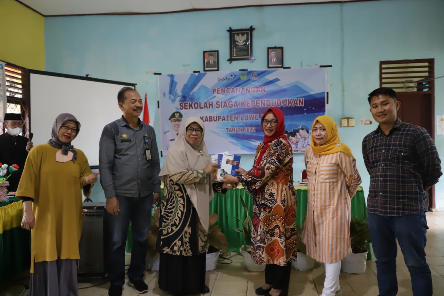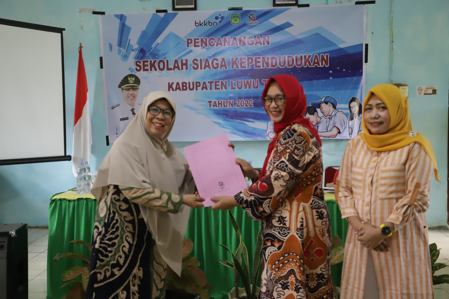 Diakhir acara, Kepala DP2KB Lutim, Hj. Puspawati Husler menyerahkan SK dan Buku Sekolah Siaga Kependudukan kepada Kepala UPTD SMPN 2 Malili, Hj. Mardiah. (ikp-kehumasan/kominfo-sp)