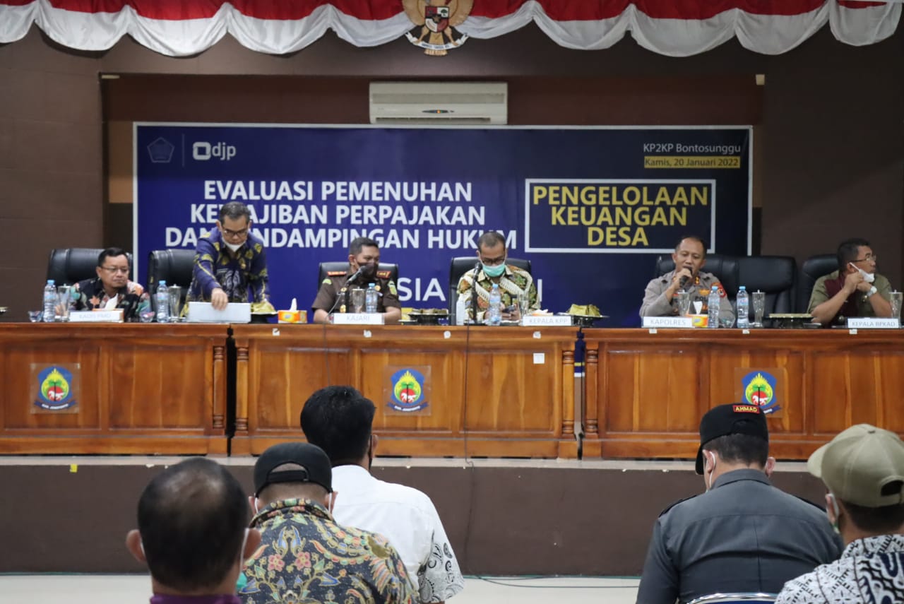 Jeneponto,Chaneltimur.Com – Kantor pelayanan pajak pratama kab bantaeng tingkat Kabupaten Jeneponto melaksanakan sosialisasi evaluasi pemenuhan kewajiban perpajakan dan pendampingan hukum pengelolaan keuangan desa bertempat di ruang pola panrannuanta kantor bupati Jeneponto.