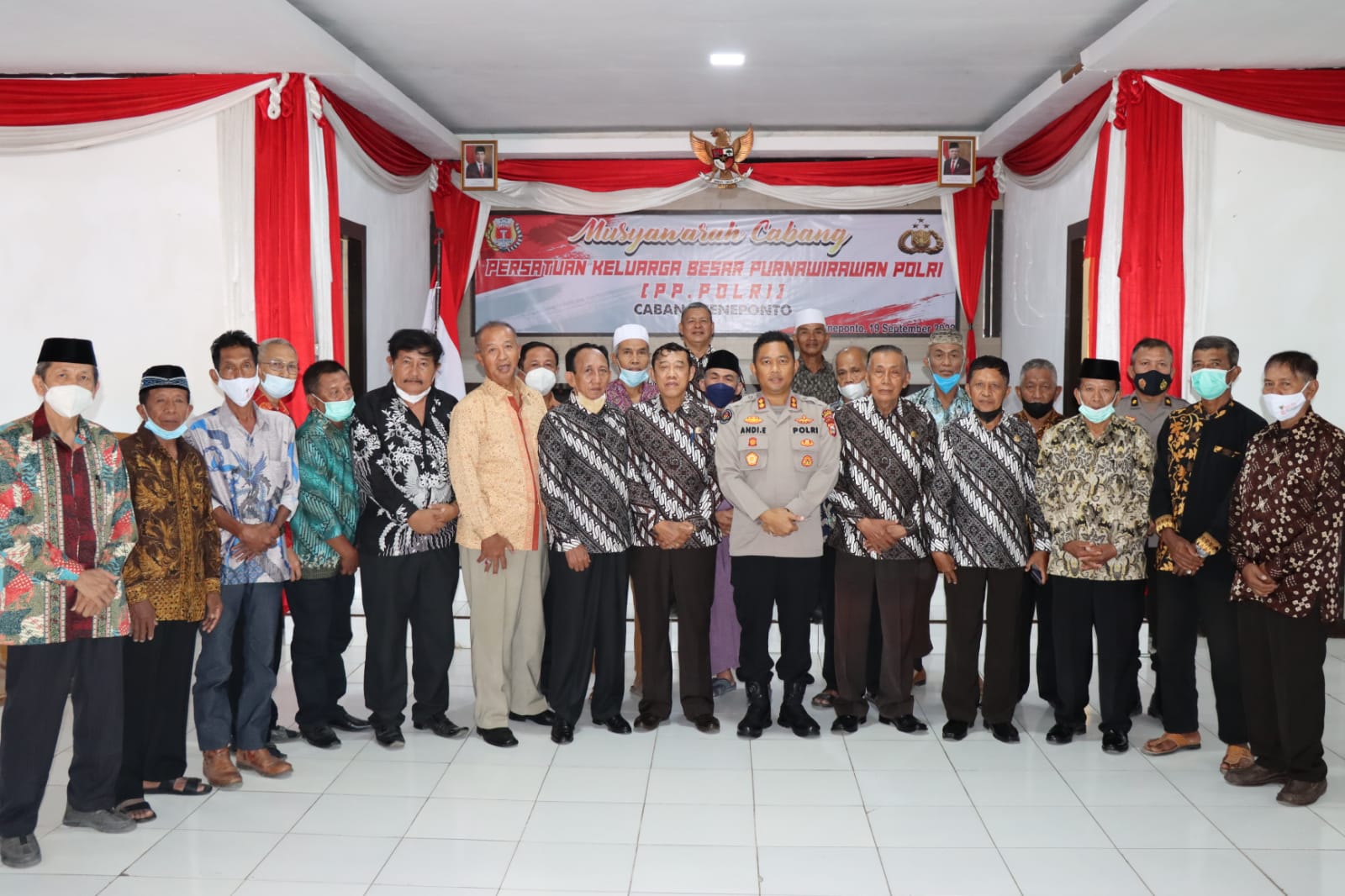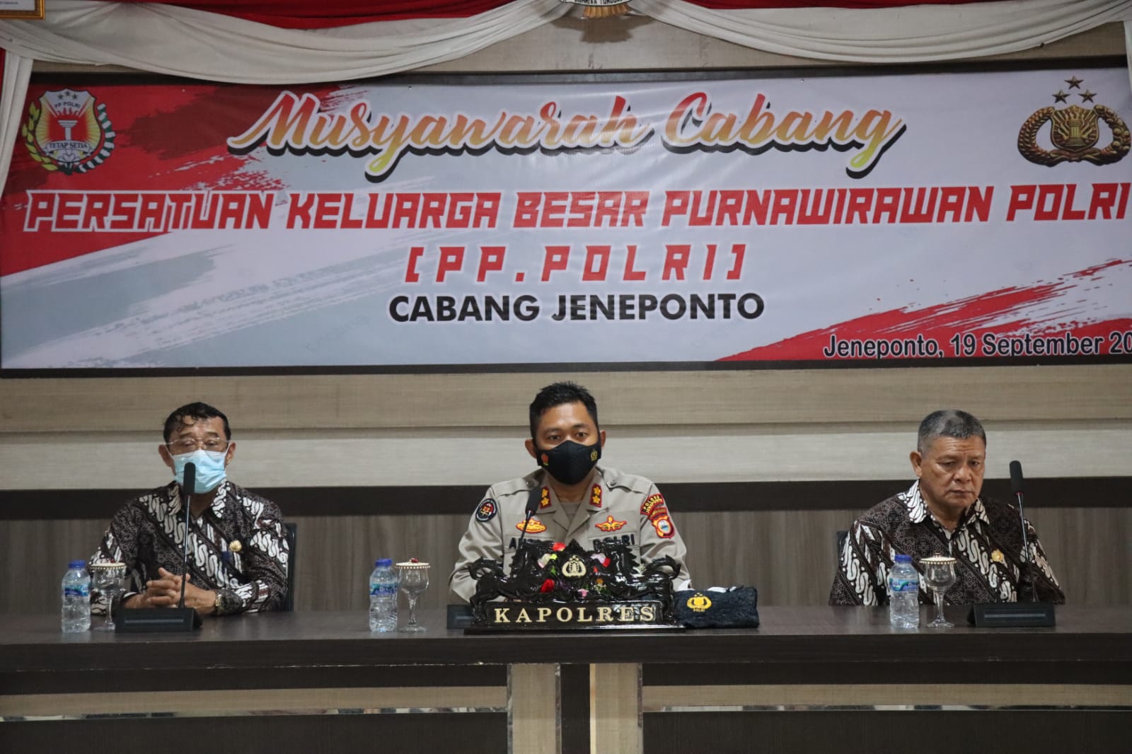 Jeneponto, Chaneltimur.com – Kapolres Jeneponto Akbp Andi Erma Suryono, SH,S.I.K,hadir dan membuka secara simbolis pelaksanaan musyawarah cabang Persatuan Purnawirawan Polri (PP.Polri) cabang jeneponto yang dihadiri kurang lebih 30 orang purnawirawan. bertempat di aula lantai II mapolres Jeneponto, Senin/19/09/2022.