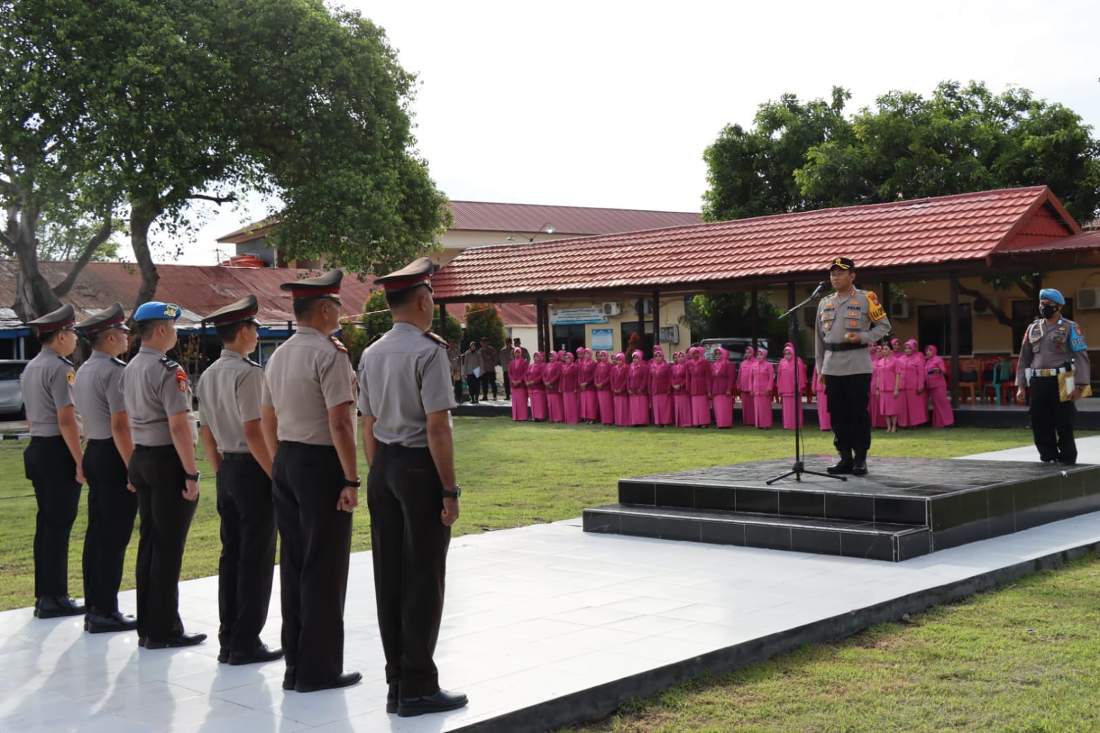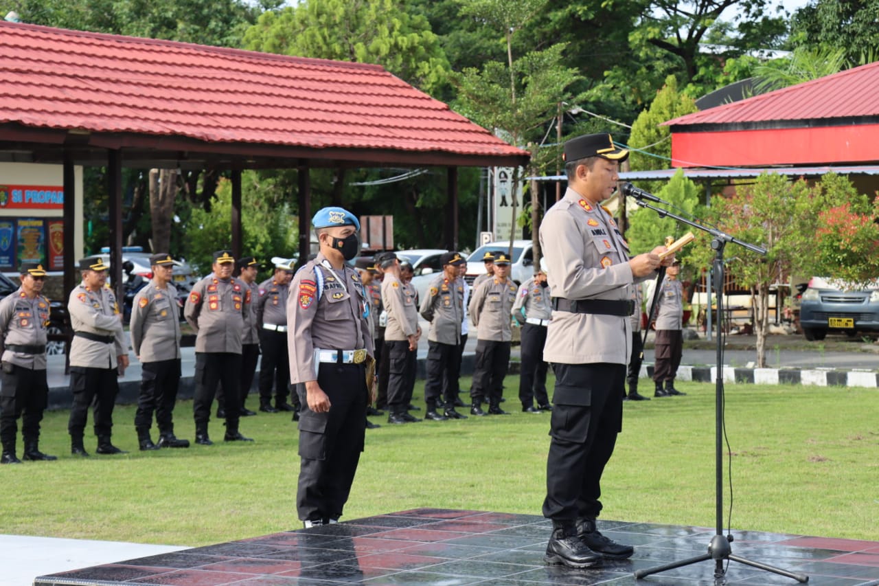 Adapun amanat Bapak Kapolres, Pertama-tama mari kita panjatkan Puji Syukur Kehadirat Allah S.W.T karena pagi hari ini kita bersama-sama hadir dan menyaksikan pelaksanaan