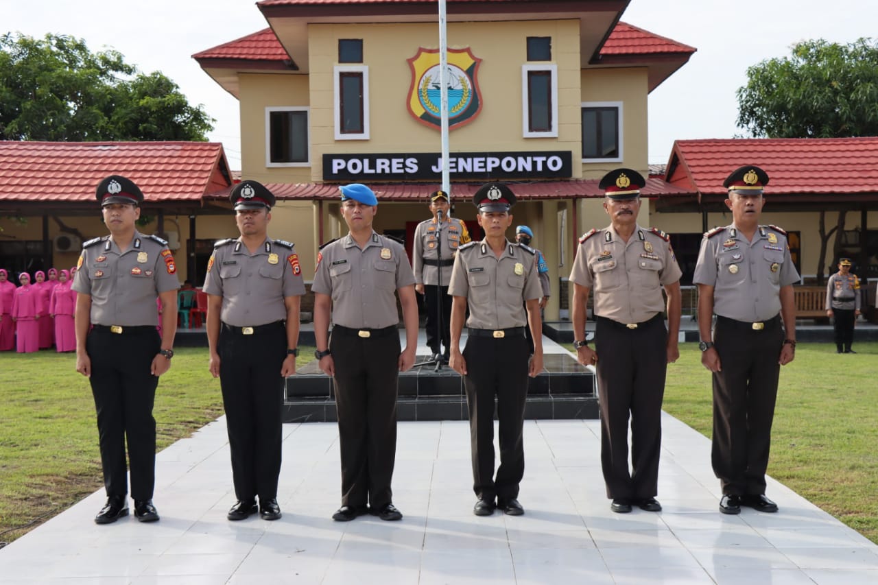 Bertindak sebagai inspektur upacara Bapak Kapolres Jeneponto Akbp Andi Erma Suryono, S.H. S.I.K., sedangkan perwira upacara Akp Bakri, S.Sos dan Komandan upacara Ipda Wawan, S.Sos