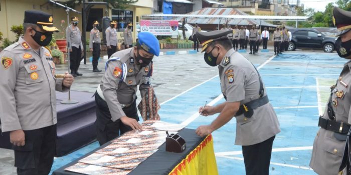 Luwu Timur, Chaneltimur.com – Kapolres Luwu Timur AKBP Indratmoko S.ik, memimpin pelaksanaan Sertijab sejumlah Pejabat Utama (PJU) dan Kapolsek di Halaman Mako Polres Luwu Timur. Senin(01/03/2021).
