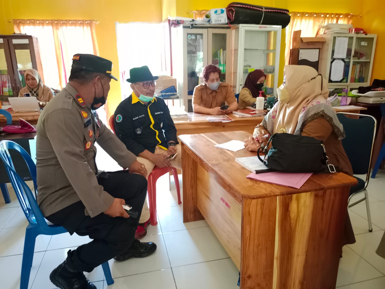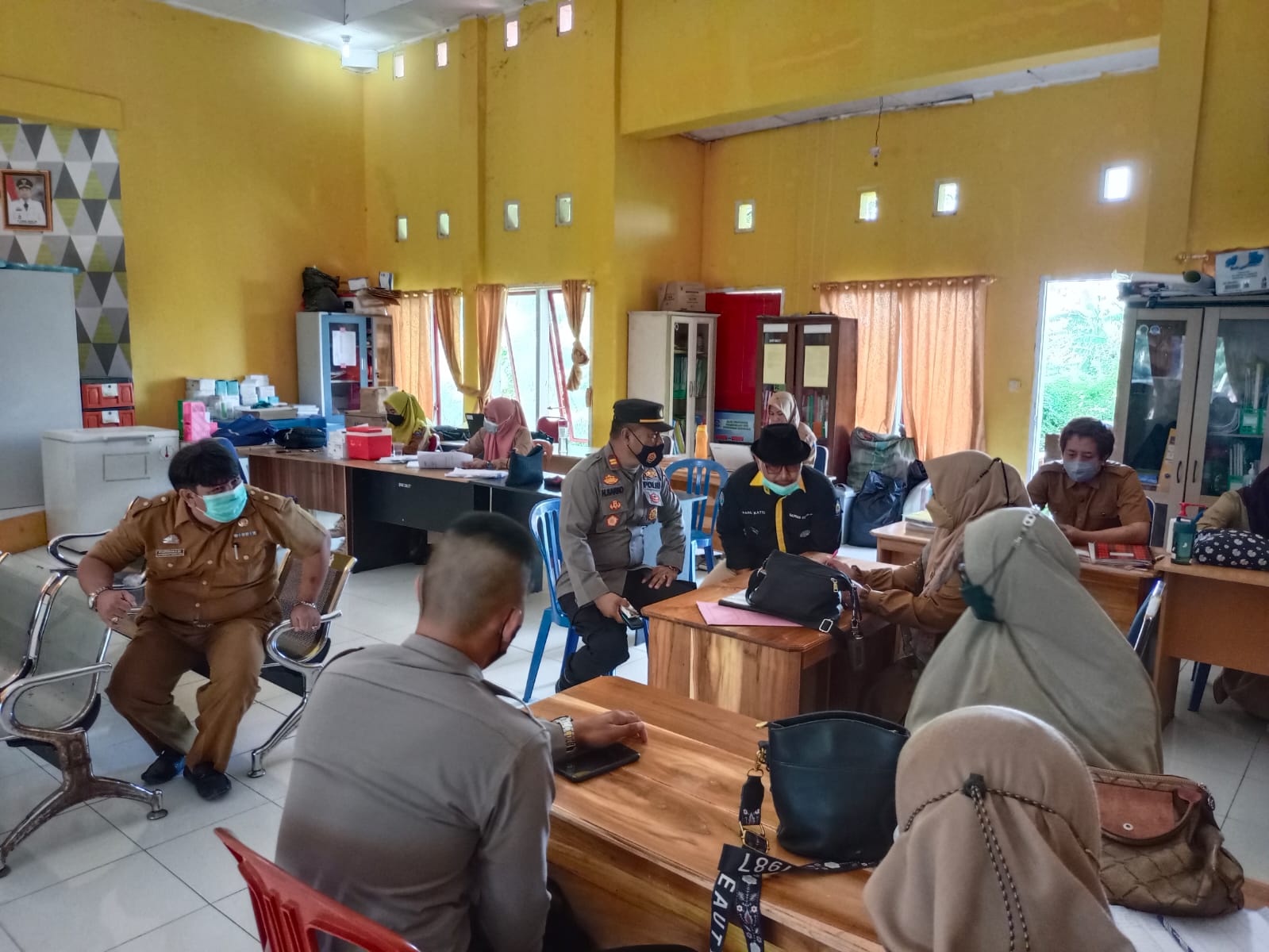 Jeneponto,Chaneltimur.Com – Kapolsek bangkala Iptu H.Sarro,S.Sos didampingi oleh kanit provos polsek bangkala Aipda Hamka memantau kegiatan pelaksanaan vaksin di puskesmas bangkala sekaligus kordinasi dengan kapuskesmas bersama kasi pemerintahan kecamatan bangkala tentang persentase peningkatan capaian vaksin harian wilayah bangkala.Selasa 8/2/2022.
