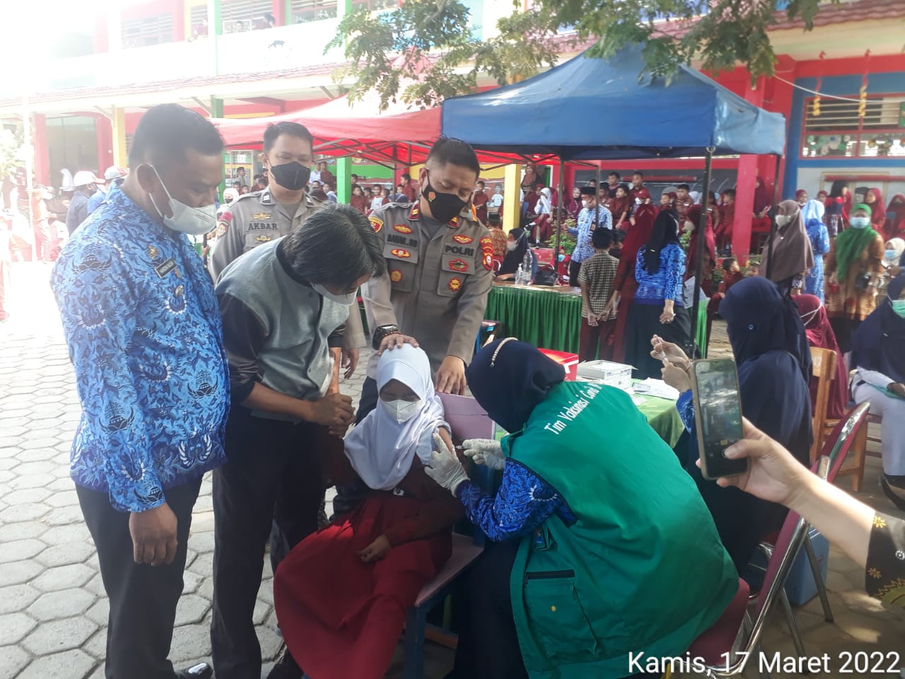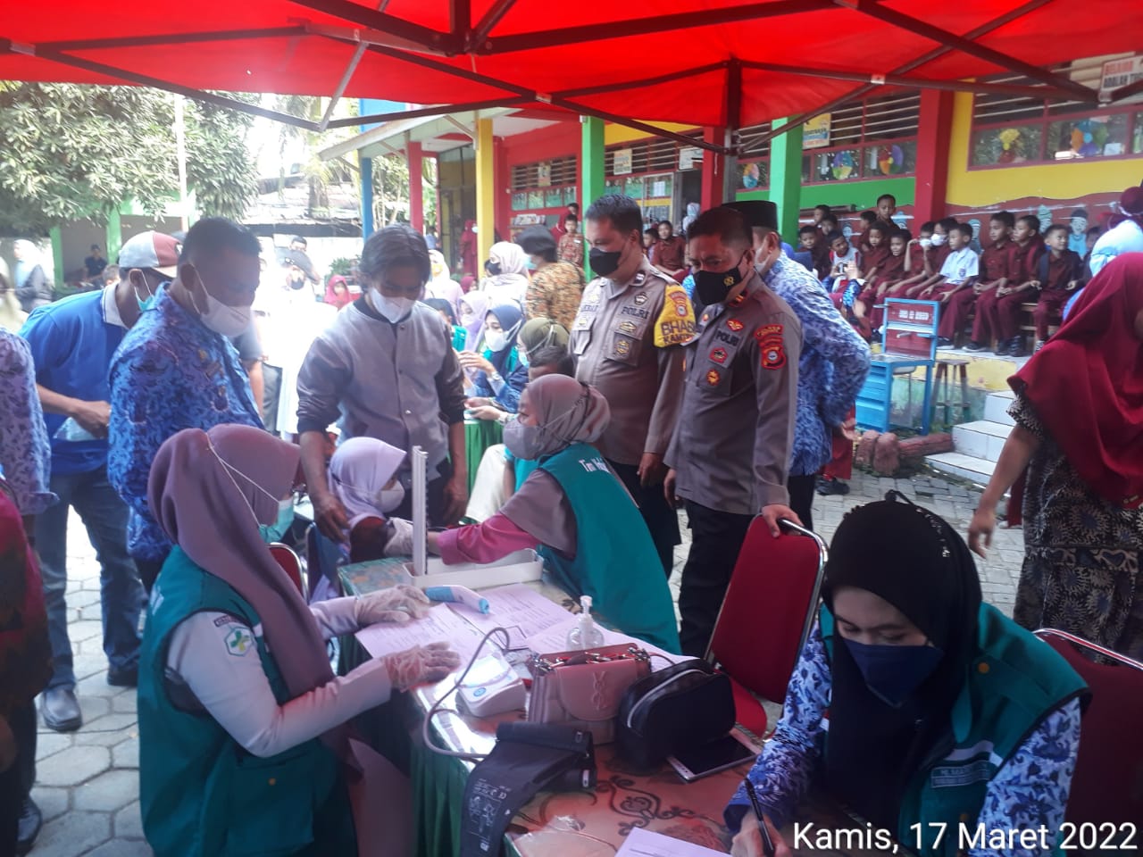 Jeneponto,Chaneltimur.Com – Kapolsek binamu Iptu Baharuddin,M S.Sos rutin melaksanakan pemantauan kegiatan vaksinasi covid-19 untuk siswa maupun siswi tingkat sekolah dasar (SD) atau madrasah ibtidaiyah (MI) dalam hal ini anak usia 6-11 tahun yang berada di wilayah kecamatan binamu,hal tersebut seperti yang dilakukan Kapolsek yang selalu didampingi para bhabhikamtibmas di jajaran kepolisian sektor binamu yang juga sedang memantau berlangsungnya kegiatan vaksinasi covid-19 yang dilaksanakan di SDN 08 binamu, Kab Jeneponto Kamis 17/3/2022.