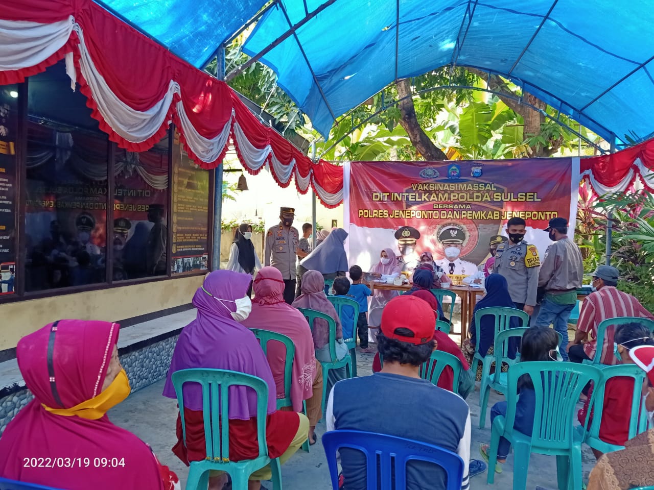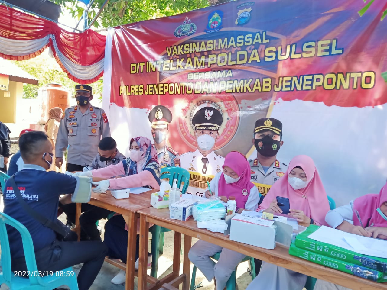 Jeneponto,Chaneltimur.Com – Personel Polsek Tamalatea Yang Dipimpin Oleh Kapolsek Tamalatea AKP M.NATSIR.S.Sos, Melaksanakan Giat Vaksinasi Massal Di Kantor Polsek Tamalatea Disertai Pembagian Sembako Berupa Minyak Goreng Yang Merupakan Bantuan Dari DIT INTELKAM POLDA SULSEL, Sabtu 19/03/2022 pukul,09.00 wita.