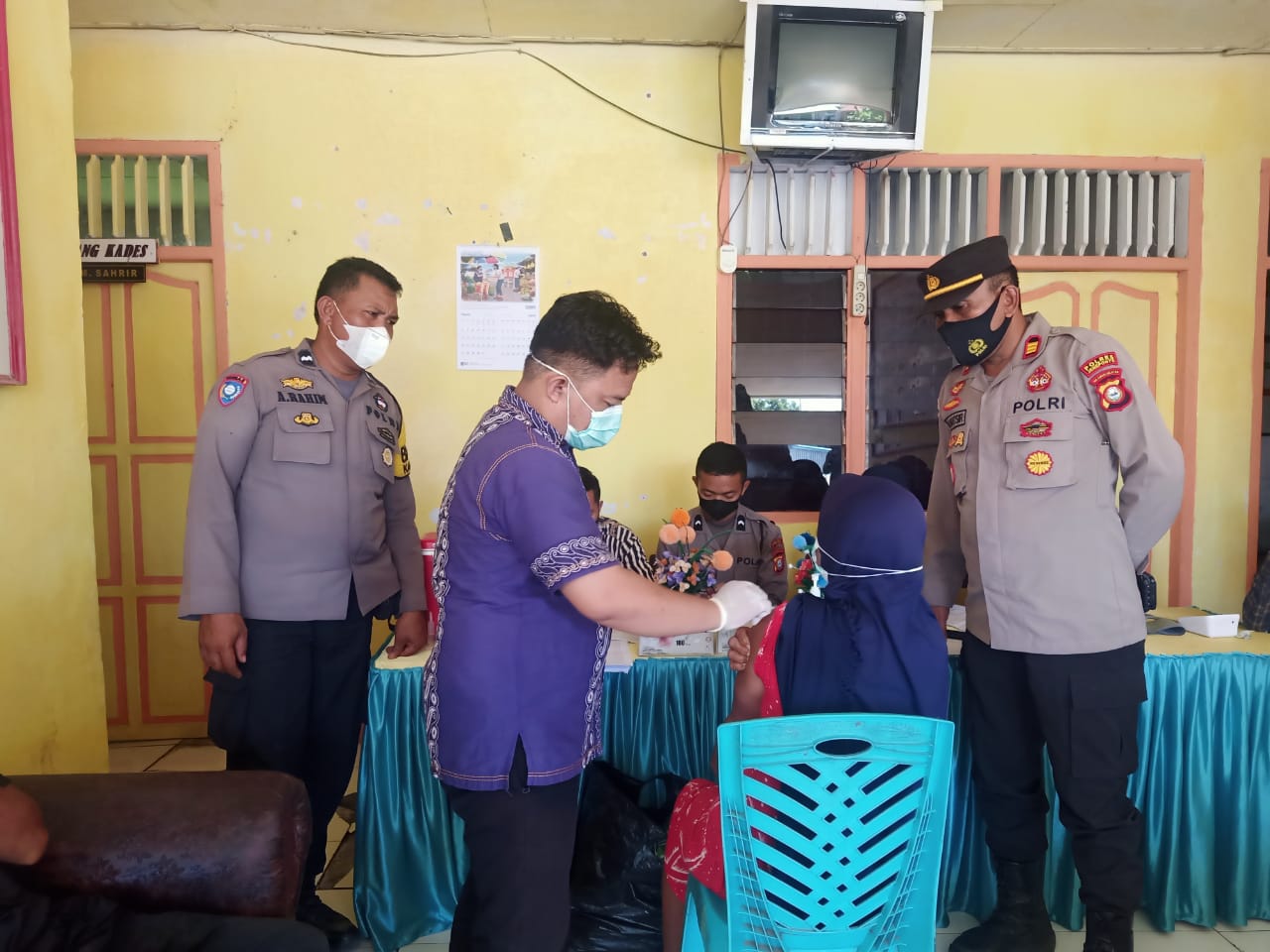 Pemerintah terus menggencarkan pemerataan vaksinasi covid-19 bagi seluruh kelompok usia selain memastikan ketersediaan vaksin dan distribusi cepat ke berbagai lokasi, pemerintah desa bekerjasama puskesmas dan sinerrgitas TNI POLRI dalam melayani masyarakat juga aktif mengimbau masyarakat turut mendukung program ini guna mengoptimalkan perlindungan kesehatan bagi masyarakat dalam membentuk herd immunity (kekebalan kelompok)