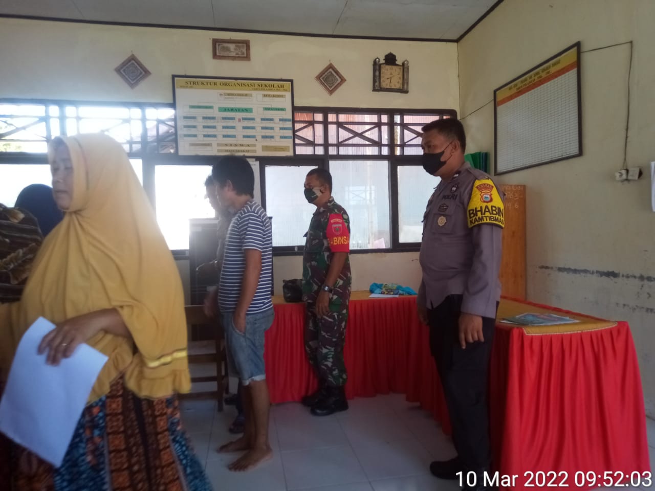kec tamalatea kab jeneponto, bhabinkamtibmas Aiptu Abd Rahim bersama babinsa serda Mahmud bersinergi dalam melaksanakan sambang kewilayah binaan serta memantau pelaksanaan pemberian vaksin covid-19 dosis I anak usia 6-11 tahun yakni kepada siswa SDI No.3 tamalatea juga masyarakat sekitar sekolah yang diselenggarakan oleh nakes puskesmas tamalatea, Kamis 10/3/2022