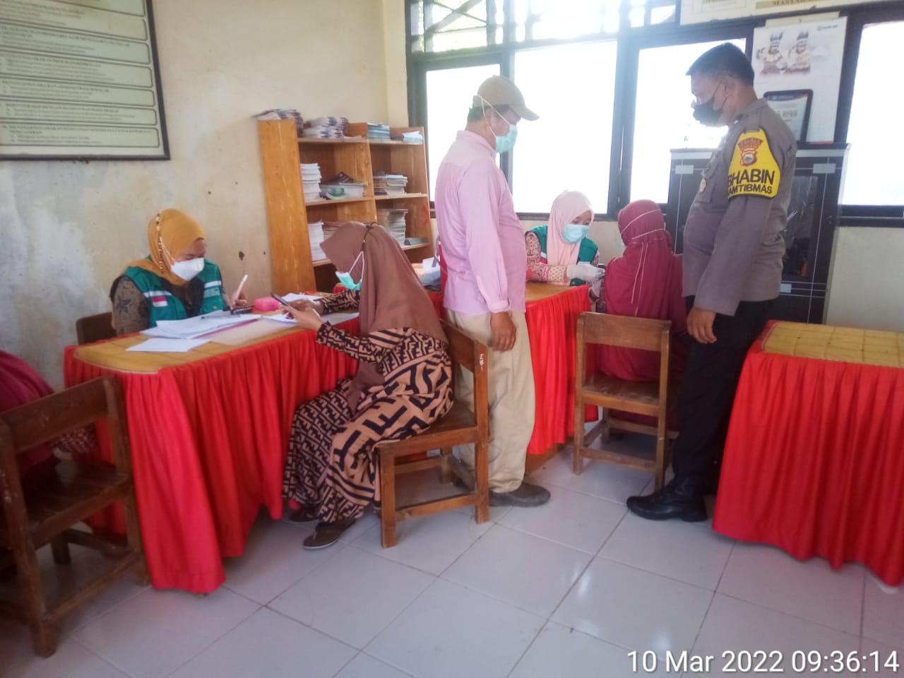 Bhabinkamtibmas Aipda Abd Rahim menyampaikan kepada masyarakat bahwa vaksin covid-19 yang di berikan kepada lapisan masyarakat telah lulus teruji, aman dan halal untuk digunakan dan bagi masyarakat yang belum divaksin akan mengalami kendala dalam kebutuhan administrasi negara kepengurusan surat-surat di pemerintahan baik dari segi pelayanan dibutuhkan surat keterangan vaksin,maupun orang yang akan bepergian dengan menggunakan alat transportasi menjadi persyaratan keterangan vaksin,selain itu Aipda Abd Rahim juga menghimbau agar masyarakat tetap disiplin mematuhi protokol kesehatan dengan budaya 5M :