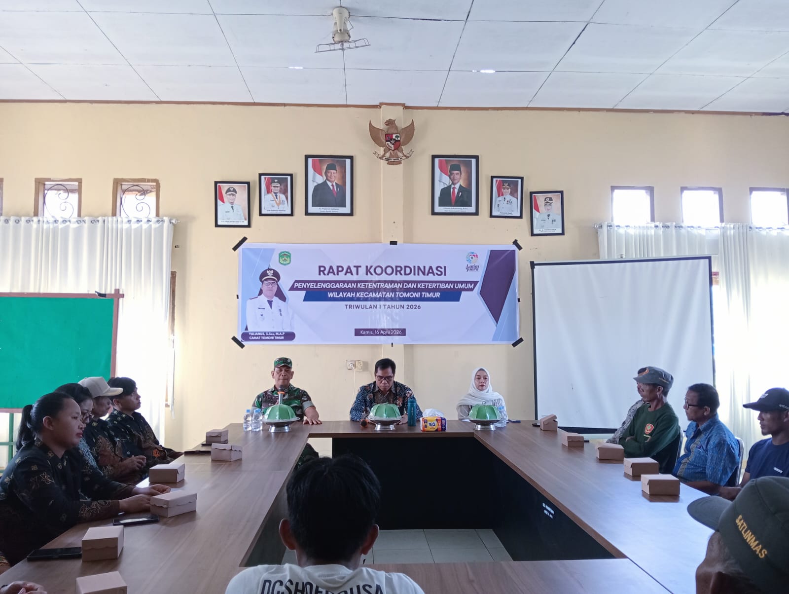 Luwu Timur, Chaneltimur.com – Pemerintah Kecamatan Tomoni Timur menggelar rapat koordinasi bidang ketenteraman dan ketertiban umum (Trantibum) di Aula Kantor Camat Tomoni Timur, Kamis (16/4/2026).