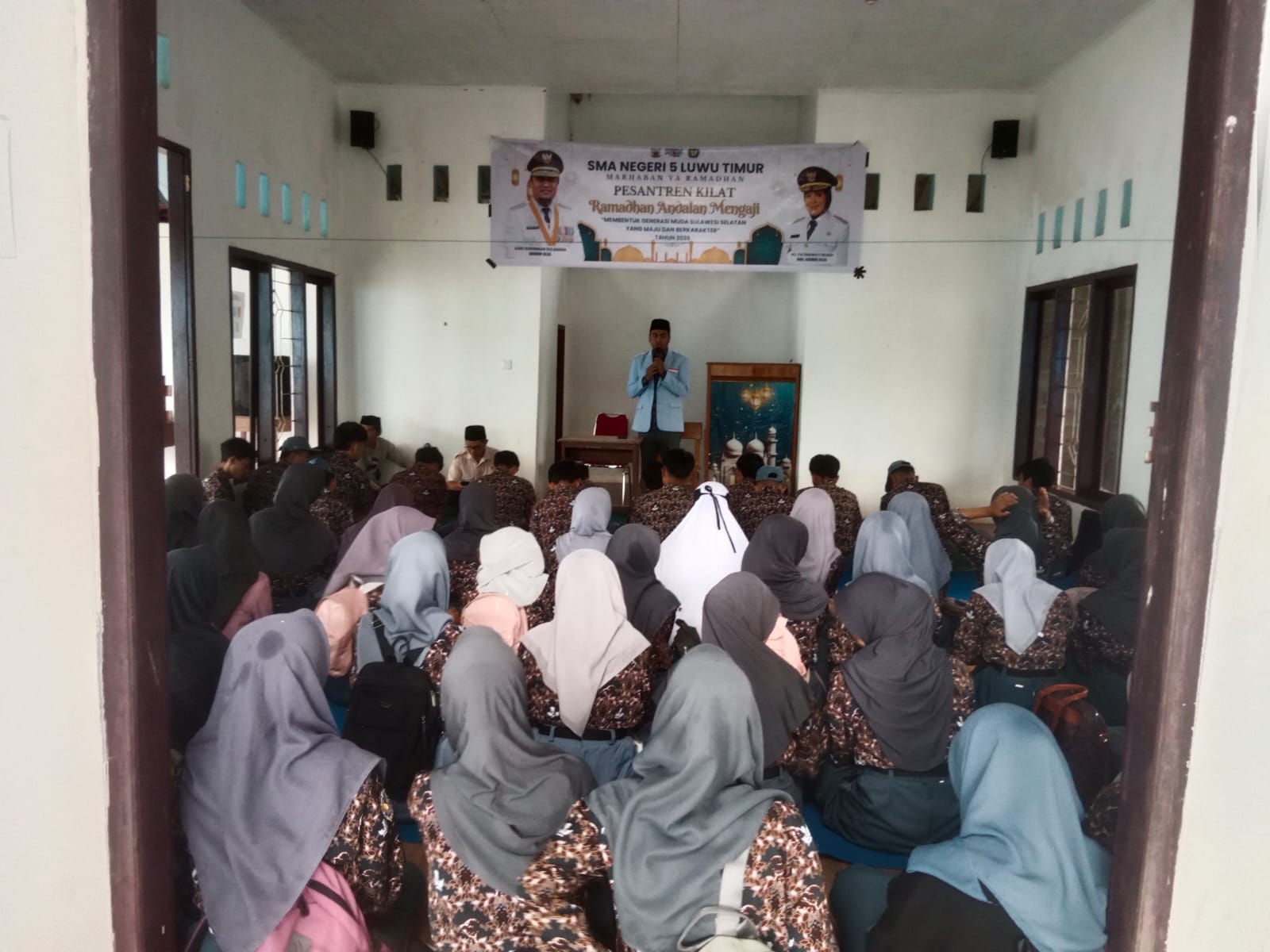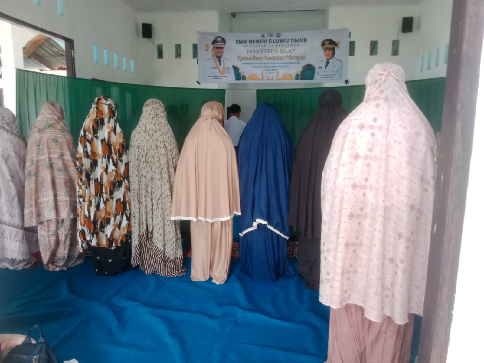 LUTIM, Chaneltimur.com – SMA 5 Luwu Timur melaksanakan kegiatan Pesantren Kilat dengan tema “Ramadhan Andalan Mengaji” (RAM) sebagai upaya meningkatkan literasi Al-Qur’an dan akhlak siswa. Kegiatan ini merupakan program yang diperuntukkan bagi para pelajar SMA, SMK, dan SLB se-Sulawesi Selatan yang belum bisa baca Al-Qur’an atau masih terbata-bata.