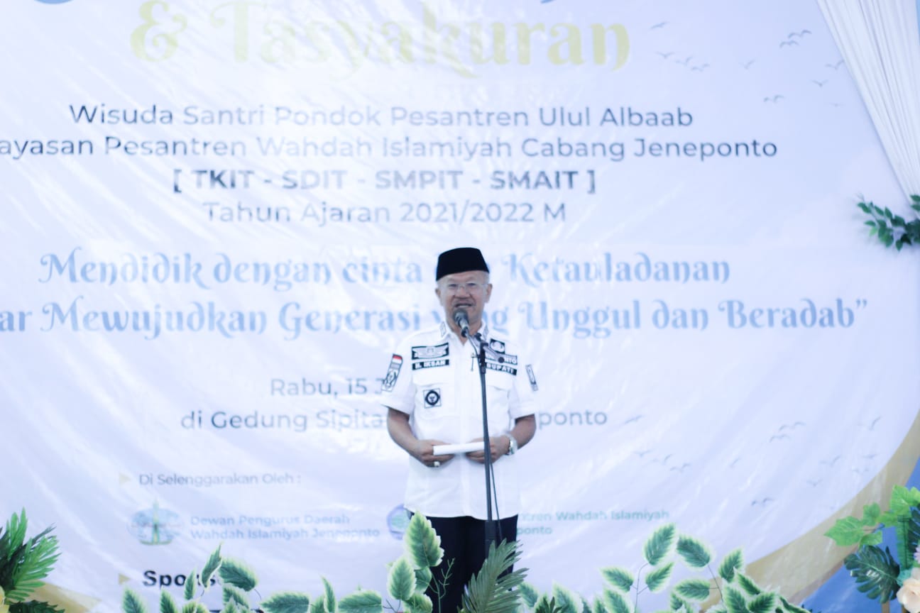 Masih dalam sambutan yang sama Bupati dua periode itu menambahkan Yayasan pesantren Wahdah Islamiyah (YPWI) kabupaten jeneponto adalah salah satu sekolah yang paling tepat untuk menyiapkan generasi masa depan yang berkualitas dan beraklak mulia.