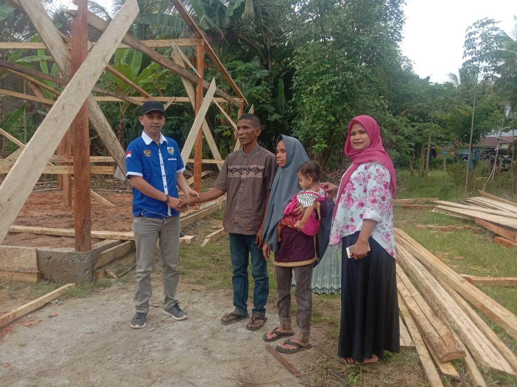 KNPI Mubar turun langsung memberi bantuan pembangunan rumah pasangan suami-istri tuna netra tersebut dengan memberikan bahan bangunan beruba atap (seng).