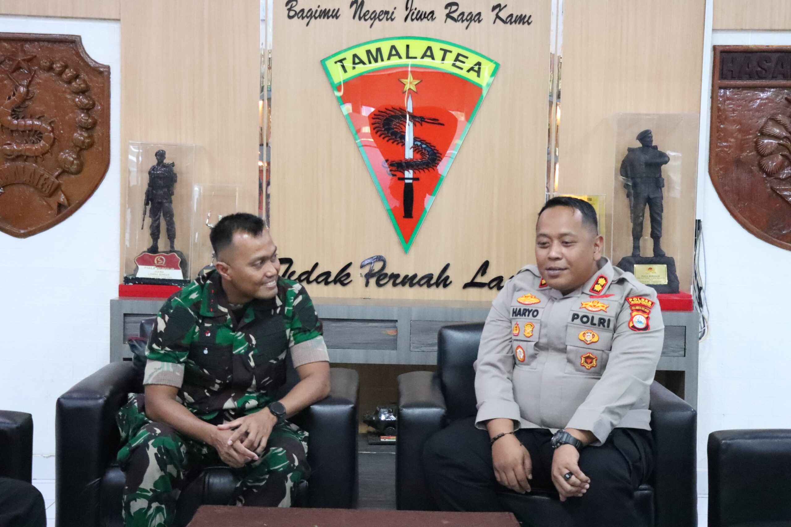 Kedatangan Kapolres yang baru pertama kali menginjakkan kaki di markas batalyon sejak resmi menjabat tersebut disambut hangat dan penuh kekeluargaan oleh Komandan Batalyon (Danyon) 726 Tamalatea, Letkol Inf. Erwin Hidayat, S.I.P. Pertemuan berlangsung di ruang kerja Danyon, menciptakan suasana dialog yang akrab namun tetap profesional.