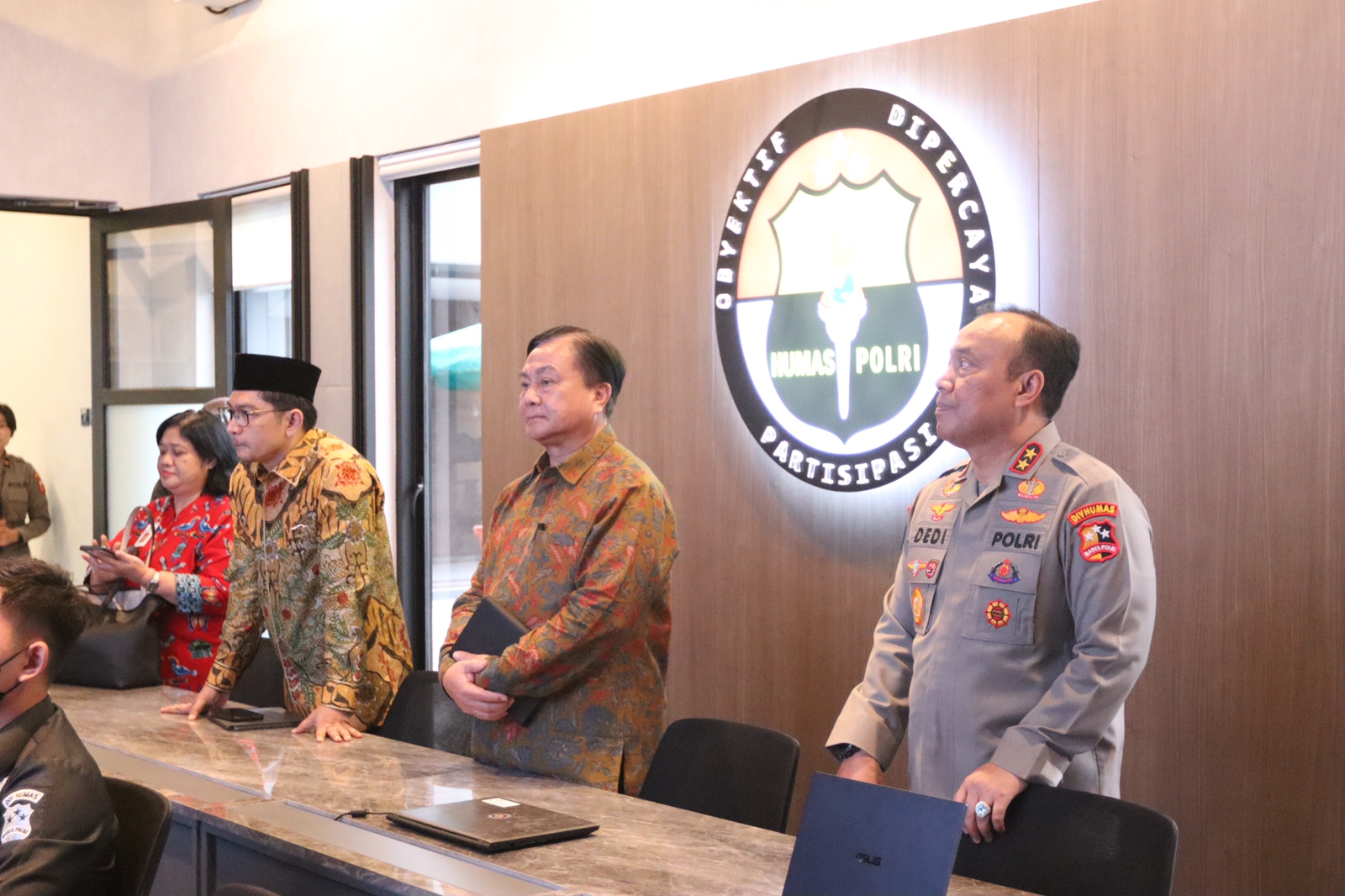Sementara dari Divisi Humas Polri juga hadir Karopenmas Divisi Humas Polri Brigjen Ahmad Ramadhan, Kabag Renmin Divisi Humas Polri, Kombes Saptono Erlangga Waskitoroso, Kabag Mitra Biro Penmas Divisi Humas Polri Kombes Ahmad Mustofa Kamal, Kabag Pensat Biro Penmas Divisi Humas Polri, Kombes Pol Hendra Rochmawan, dan Kabag Penum Biro Penmas Divisi Humas Polri Kombes Pol Nurul Azizah. (***)