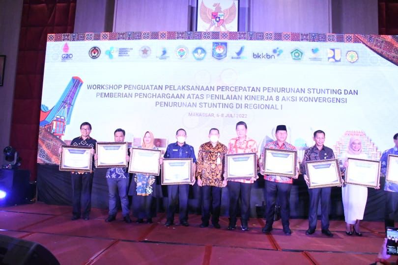 Makassar, Chaneltimur.com – Kabupaten Luwu Utara mendapatkan penghargaan terbaik ketiga dalam hal penanganan stunting di Provinsi Sulawesi Selatan. Penghargaan diterima Wakil Bupati Luwu Utara, Suaib Mansur, Kamis (7/7/2022), di Hotel Gammara Makassar.
