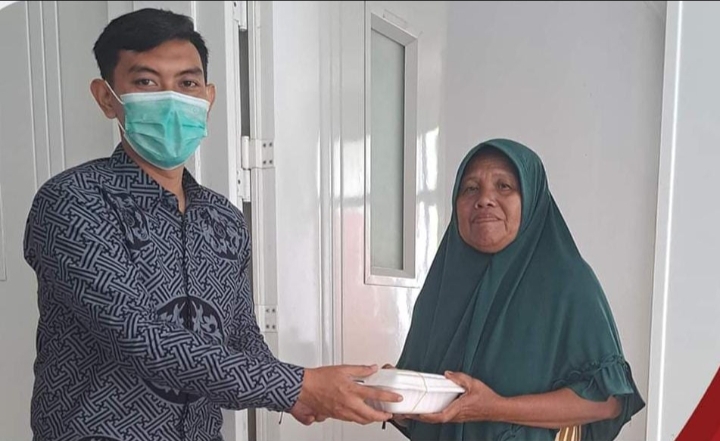 Secara langsung Direktur, dr. Andi Fajar Wela, M.Kes, Sp.PA didampingi struktural dan kepala ruangan memberikan nasi box kepada penunggu pasien ruang rawat inap.