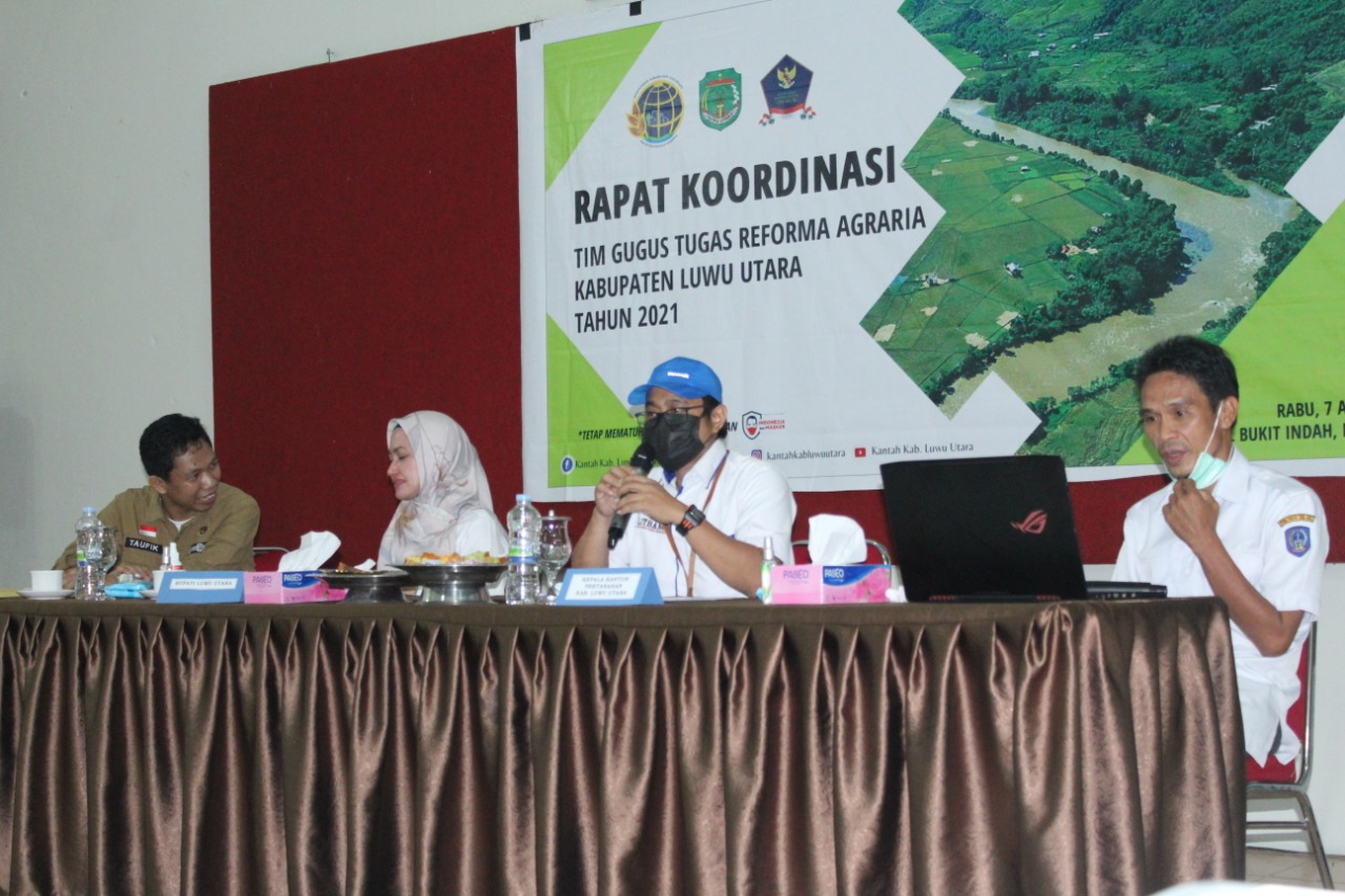 “Nanti kita akan tunjuk satu kawasan yang bisa kita jadikan percontohan untuk kampung reforma agraria. Di kawasan itu, kita bikin kegiatan terpadu dengan melibatkan seluruh Perangkat Daerah. Kita jadikan sebagai pilot dulu, kemudian nantinya direplikasi ke tempat-tempat atau kawasan lainnya untuk juga mendapatkan program ini,” kata Indah, saat memimpin Rapat Koordinasi Tim Gugus Tugas Reforma Agraria, Rabu (7/4/2021), di Aula Hotel Bukit Indah, Masamba. Menurutnya, salah satu keberhasilan GTRA adalah ketika berhasil mewujudkan kampung reforma agraria.