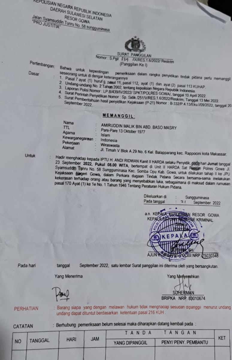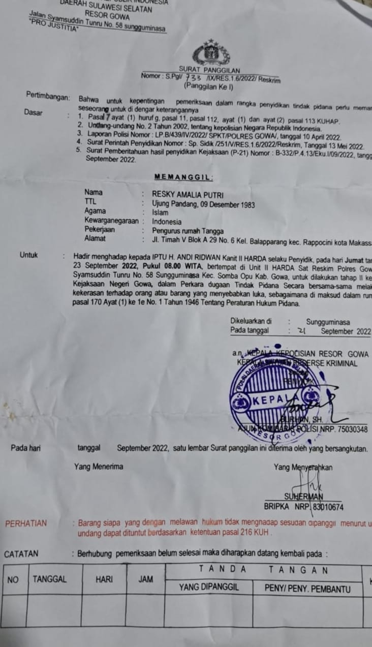 Ataukah mungkin pasutri ini memiliki surat sakti, sampai pemanggilan dari pihak Penyidik polres Gowa diabaikan.
