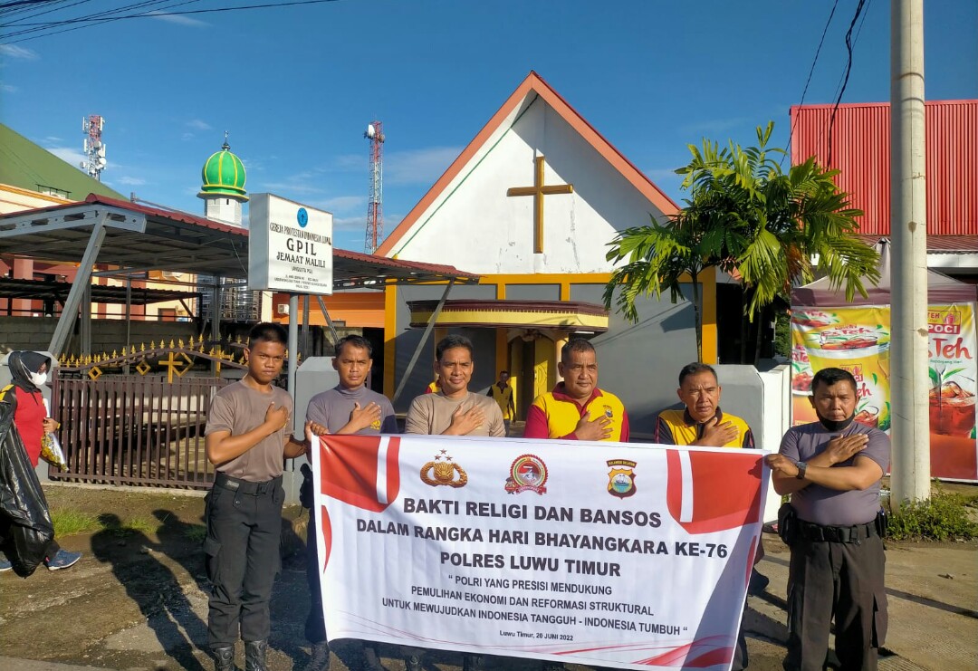 Luwu Timur, Chaneltimur.com – Personil Polres Luwu Timur melaksanakan Bakti Religi dalam rangka hari Bhayangkara ke-76 yaitu melaksanakan kurvey di tempat ibadah yaitu di Mesjid Haqqul Yaqin Malili, Gereja GKST Imanuel Malili dan Gereja GPIL Malili. Jumat(17/06/2022)