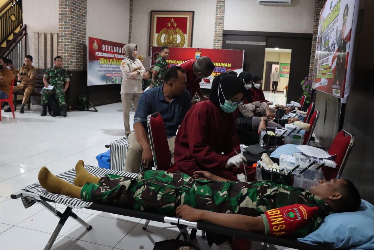 Jeneponto, Chaneltimur.Com – Dalam menyambut Hut Bhayangkara tahun 2022, polres jeneponto menggelar kegiatan donor darah yang diikuti oleh personil polri, perwakilan dari Kodim 1425 Jeneponto, perwakilan bhayangkari cabang jeneponto termasuk beberapa pejabat utama polres Jeneponto serta masyarakat umum, kegiatan donor darah kali ini bertemakan “Polri Yang Presisi Mendukung Pemulihan Ekonomi Dan Reformasi Struktural Untuk Mewujudkan Indonesia Tangguh-Indonesia Tumbuh” Selasa/7/6/2022.
