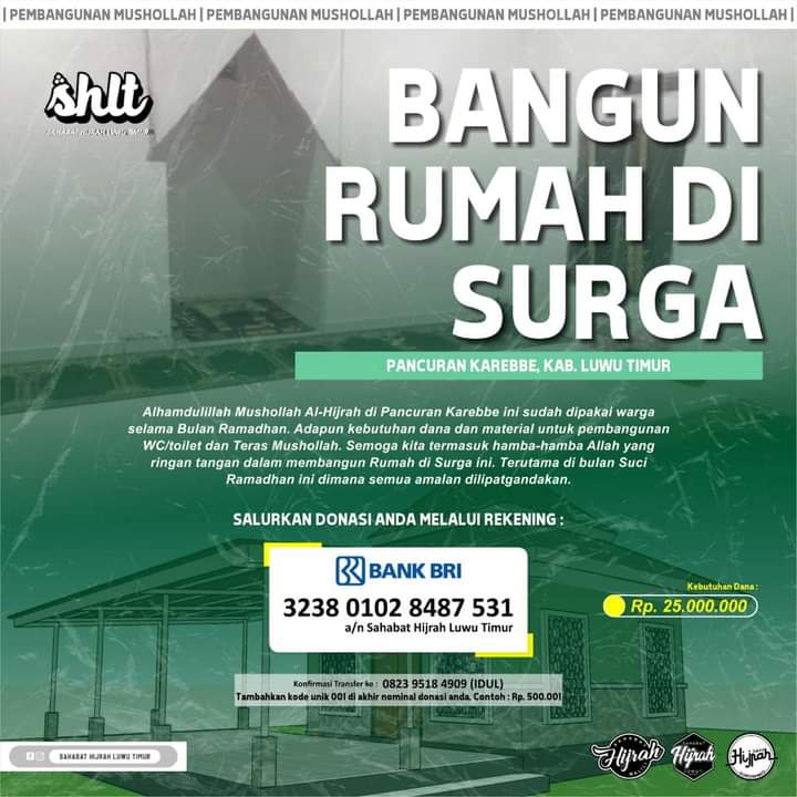 Luwu Timur,Chaneltimur.com – Alhamdulillah pembangunan Mushollah “Al Hijrah” Pancuran Karebbe di bulan Ramadhan ini sudah dapat dimanfaatkan oleh warga untuk beribadah.