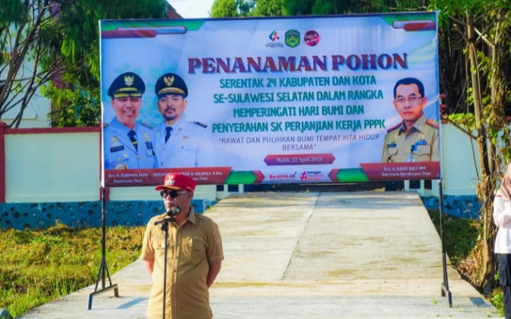 “Menjadi tanggung jawab kita bersama untuk menjaga Bumi kita agar tetap lestari dan asri terkhususnya di Bumi Batara Guru tercinta kita ini. Salah satu upaya nyata dalam menjaga kelestarian alam dan lingkungan hidup adalah dengan melakukan kegiatan penanaman pohon yang dilakukan secara serentak se Sulawesi Selatan,” kata H. Budiman.
