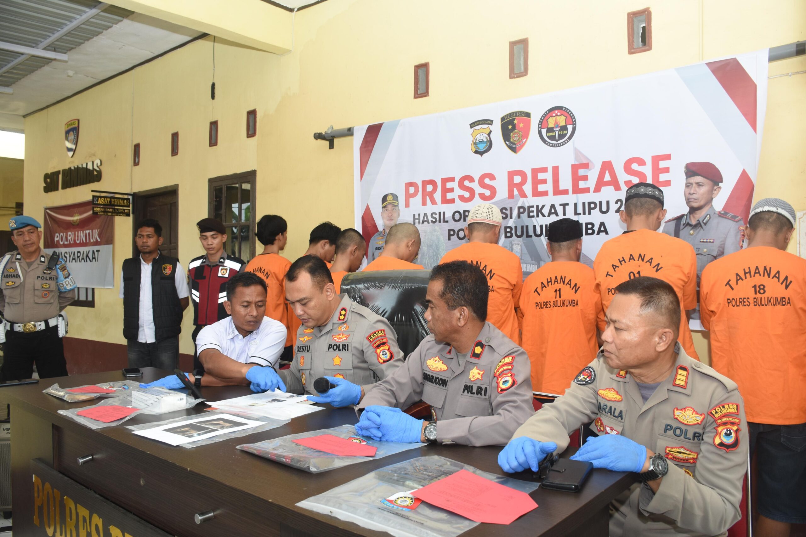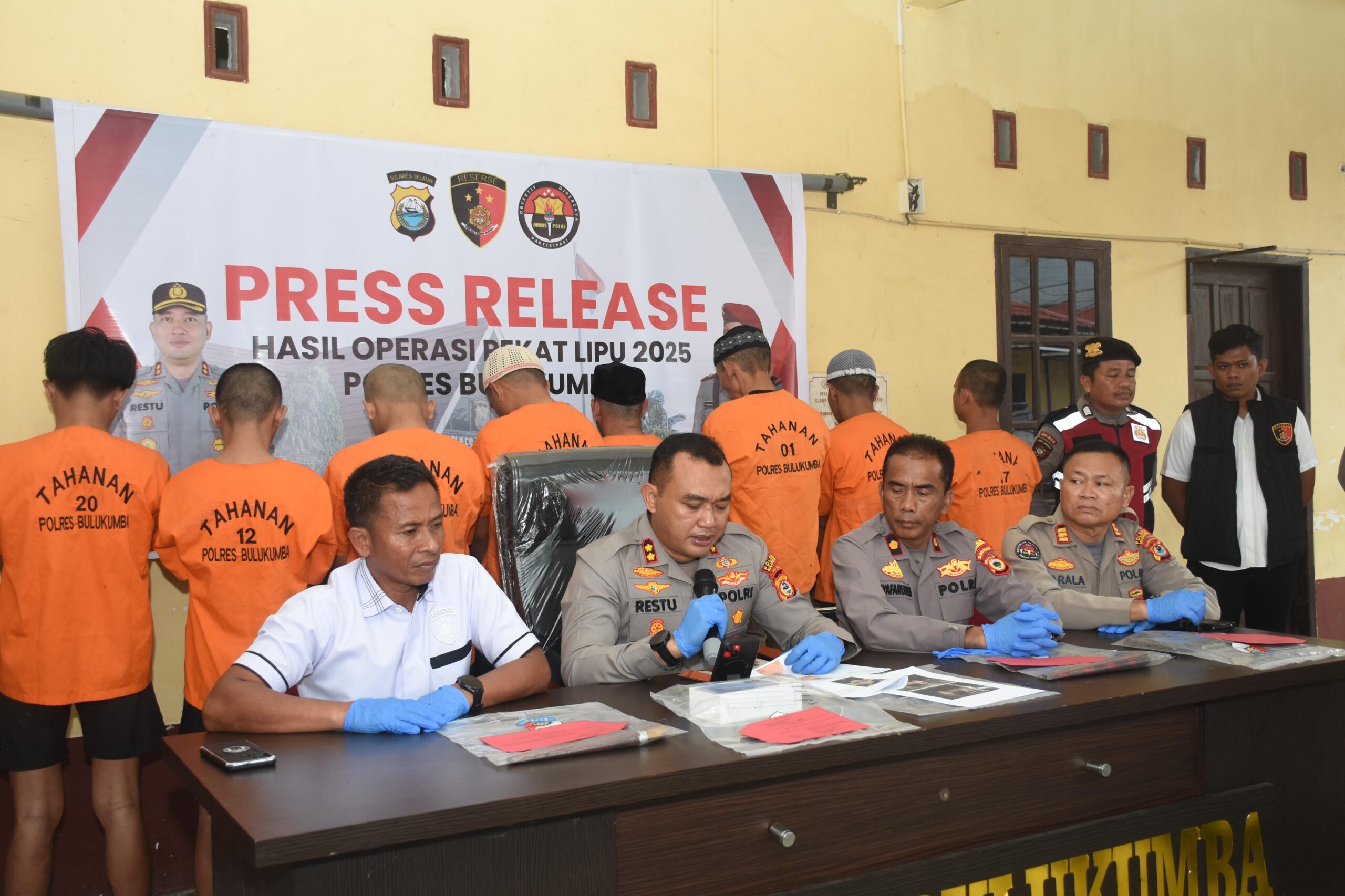 Dalam keterangannya, Kapolres menyampaikan hasil pelaksanaan Operasi Pekat Lipu 2025, yang digelar selama 20 hari sejak 3 hingga 20 Mei 2025. Operasi Kepolisian Kewilayahan ini dilaksanakan secara terpadu oleh jajaran Polres Bulukumba dengan tujuan menciptakan situasi keamanan dan ketertiban masyarakat (kamtibmas) yang aman dan kondusif.