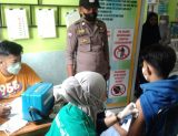 Jeneponto, Chaneltimur, Com – Bhabinkamtibmas kelurahan tolo utara Aiptu Palinggi mendampingi tenaga kesehatan dari puskesmas tolo melaksanakan pemberian vaksin bagi ASN yang