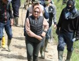 “Bupati Luwu Utara, Indah Putri Indriani Mengendarai Buleozer Multifungsi di Area Persawahan Desa Radda”