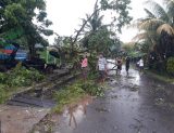 Luwu Timur,Chaneltimur.com – Hujan deras yang mengguyur disertai angin kencang pada pukul 16.25 wita mengakibatkan beberapa pohon besar tumbang dan menutupi badan