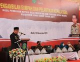 LUTIM,Chaneltimur.com – Bupati Luwu Timur, H. Budiman mengambil sumpah 61 Kepala Desa Terpilih hasil Pilkdes serentak, di Gedung Olahraga (GOR) Malili, Kamis