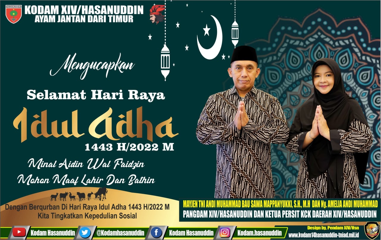 “Pelaksanaan Sholat Idul Adha khusus untuk personel Kodam yg berada di wilayah Makassar dilaksanakan di lapangan Hasanuddin, juga warga Kota Makassar silahkan, kita gabung sama-sama,” Ajaknya.
