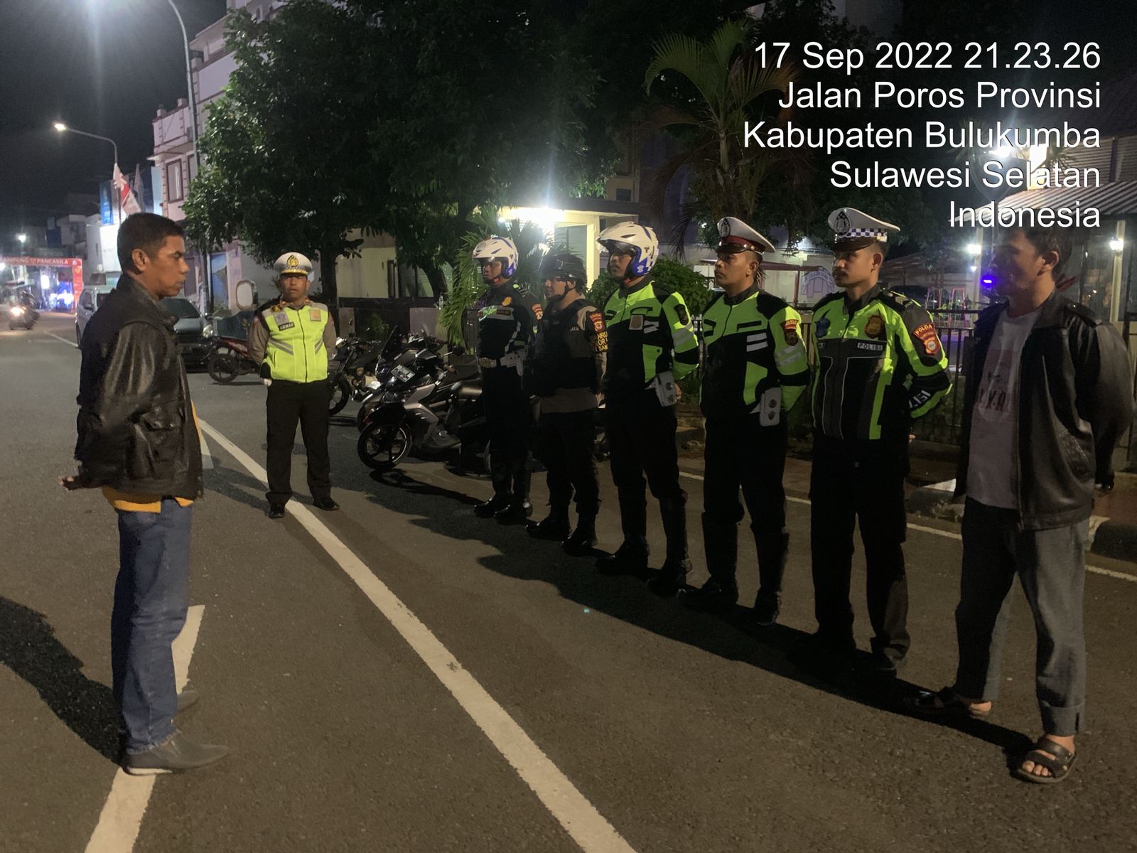 Patroli gabungan di pimpin oleh Kasat Tahti Polres Bulukumba IPTU Arifuddin di dampingi IPTU Anwar Kaur Bin Ops (KBO) Satlantas Polres Bulukumba dan bersama personel gabungan Polres dan Polsek Ujung Bulu.