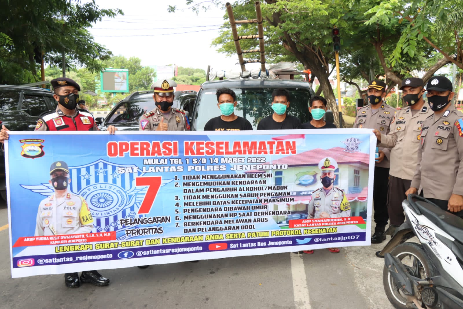Jeneponto,Chaneltimur.Com – Pelaksanaan ops keselamatan kali ini hari yang ke 7 di pimpin langsung oleh Kabag Ops Polres Jeneponto Kompol H. Muh Thamrin berlokasi di jl ultan hasanuddin dan jl pahlawan kel empoang kec binamu kab jeneponto, Senin 7/3/2022.
