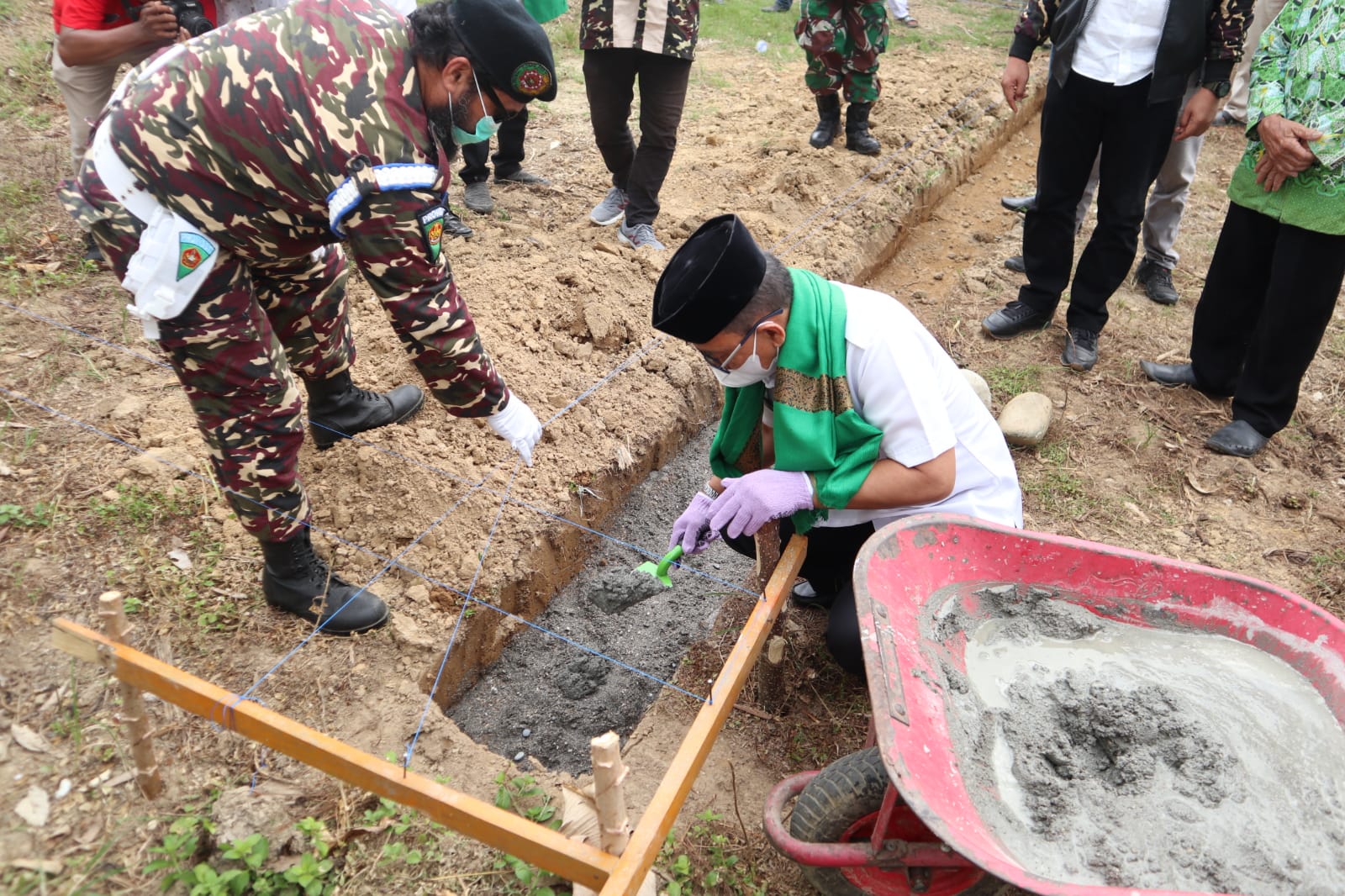 Luwu Timur,Chaneltimur.com – Agenda Peletakan Batu Pertama pembangunan Sekretariat Pimpinan Cabang GP. Ansor Luwu Timur terletak di Desa Tarengge, Kec. Wotu, Hadir dalam kesempatan ini, Bapak Bupati, yang diwakili oleh Sek/retaris Daerah, Drs. H. Bahri Suli, M.M, Kapolsek wotu, Pabung dan Danramil, Macoa Bawalipu, Camat wotu, Jajaran Ansor PC. Lutra, PC. Palopo, PC. Luwu, Kasatkornas Banser, dan Kasatkorwil Banser Sulsel, Ketua KNPI, Pimpinan Lembaga Otonom NU, SKPD Lingkup pemerintahan Kabupaten Luwu Timur, Kepala Desa, Rais Surya PC. NU Lutim, Tanfiziah PC. NU Lutim, KUA Sekabupaten Luwu Timur, pimpinan Lembaga Kepemudaan serta Tokoh Masyarakat Desa Tarengge. Rabu, 02/02/22.