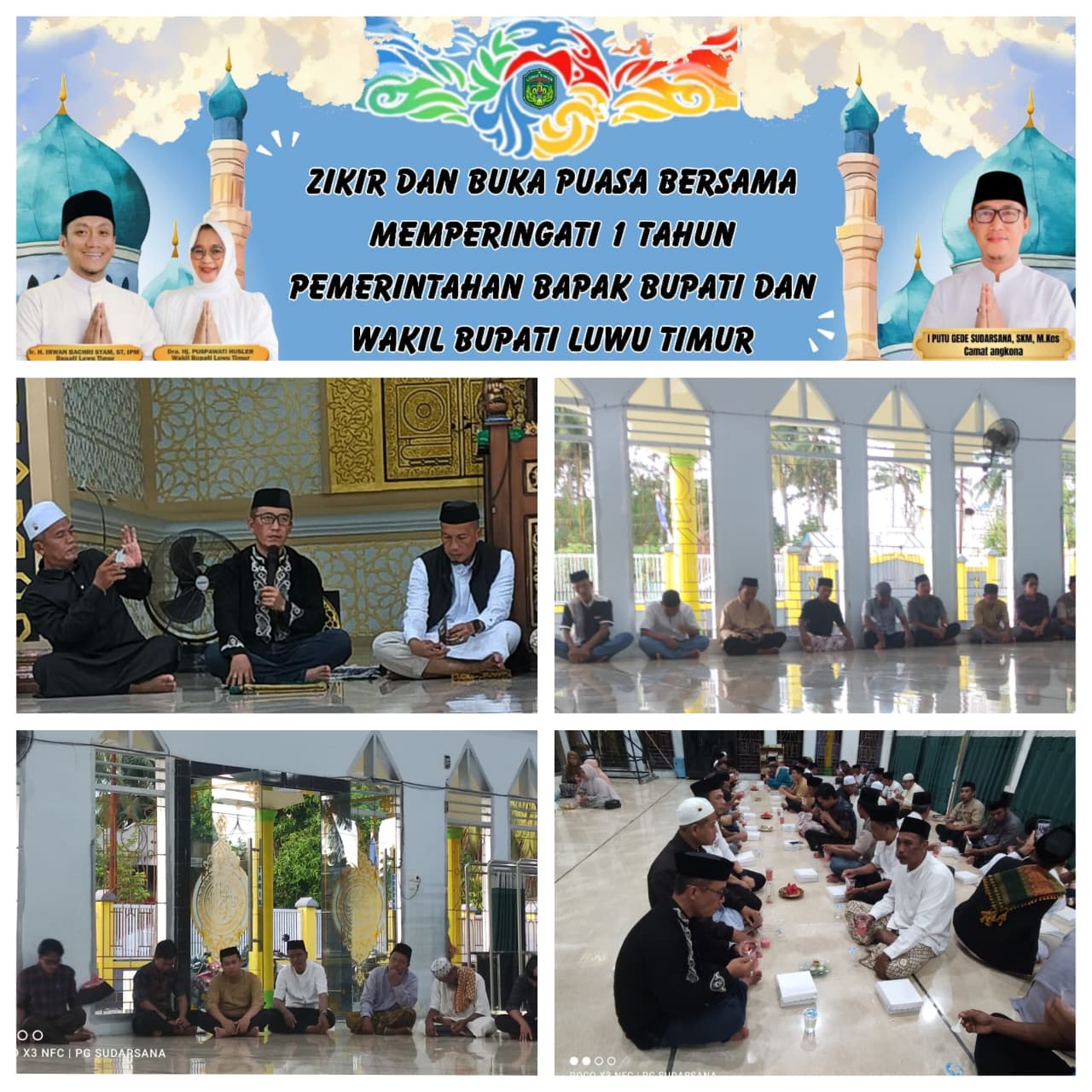 Luwu Timur, Chaneltimur.com – Pemerintah Kecamatan Angkona menggelar Dzikir dan Doa Bersama serta Buka Puasa Bersama memperingati 1 tahun Pemerintahan Bupati dan Wakil Bupati Luwu Timur di Masjid At-Taqwa Solo Kecamatan Angkona, Kamis, 19 februari 2026.