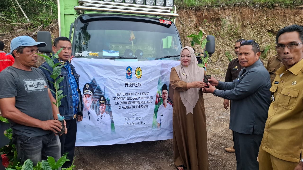 Jeneponto, Chaneltimur.com — Pemerintah Kabupaten Jeneponto menggelar kegiatan pelepasan bantuan bibit kopi arabika dari Direktorat Jenderal Perkebunan Kementerian Pertanian RI Tahun 2025, yang dilaksanakan di Kabupaten Jeneponto. Kegiatan ini menjadi langkah nyata dalam mendukung program pengembangan komoditas perkebunan unggulan di wilayah pegunungan Rumbia.