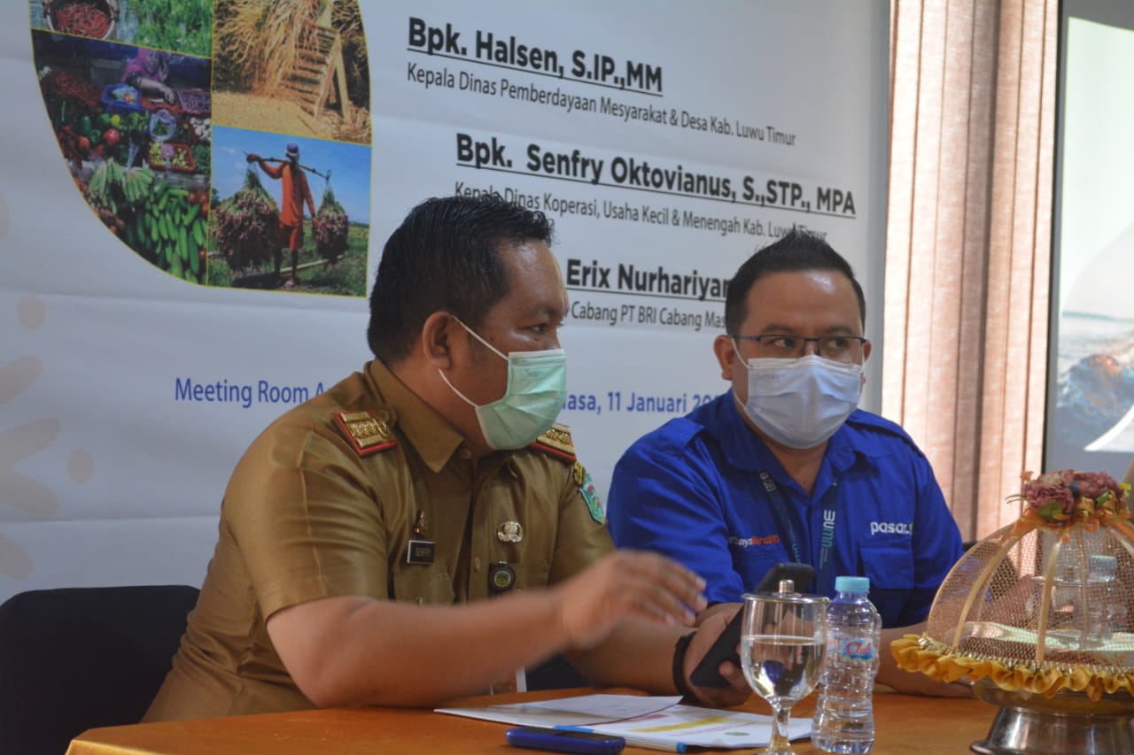 Hadir pada kesempatan ini sekaligus juga sebagai narasumber, Kepala Dinas Perdagangan Koperasi UMKM dan Perindustrian, Senfri oktovianus S.STP, M.PA, Sekretaris Dinas Pemberdayaan Masyarakat dan Desa, Erwin, Kepala Cabang BRI Masamba serta pimpinan Unit BRI se-Kabaupaten Luwu Timur.