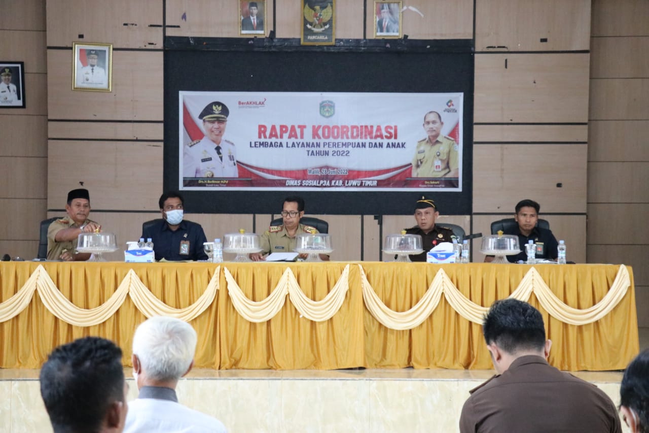 LUTIM, Chaneltimur.com – Pemerintah Kabupaten Luwu Timur melalui Dinas Sosial Pemberdayaan Perempuan dan Perlindungan Anak (Dinsos P3A) menggelar Rapat Koordinasi (Rakor) Lembaga Layanan Perempuan dan Anak Tahun 2022 di Aula Dinas Pendidikan dan Kebudayaan, Selasa (28/06/2022).