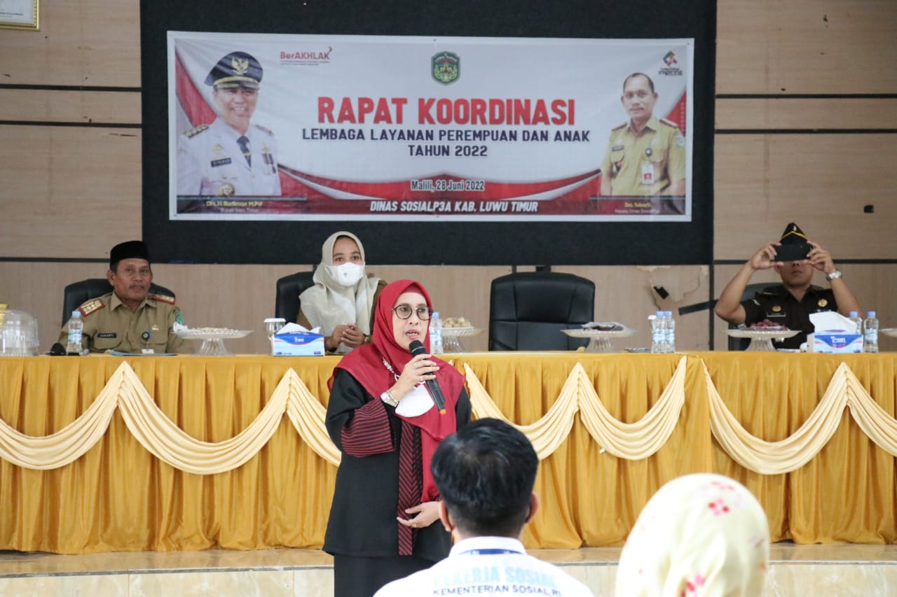 LUTIM, Chaneltimur.com – Pemerintah Kabupaten Luwu Timur melalui Dinas Sosial Pemberdayaan Perempuan dan Perlindungan Anak (Dinsos P3A) menggelar Rapat Koordinasi (Rakor) Lembaga Layanan Perempuan dan Anak Tahun 2022 di Aula Dinas Pendidikan dan Kebudayaan, Selasa (28/06/2022).