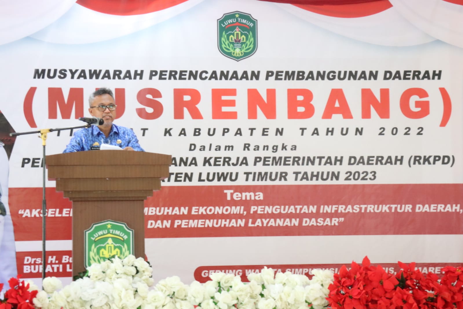 Bupati Luwu Timur, H. Budiman dalam sambutannya mengatakan bahwa, perencanaan pembangunan memiliki empat pendekatan antara lain; Teknokratif, Partisipatif, Politik, Atas-bawah (Top-down), dan Bawah-atas (Bottom-up). Ia juga mengatakan bahwa tema pembangunan tahun 2023 “Akselerasi Pertumbuhan Ekonomi, Penguatan Infrastruktur Daerah, dan Pemenuhan Layanan Dasar” difokuskan pada akselerasi pertumbuhan ekonomi, Penguatan infrastruktur yang dapat meningkatkan produktivitas masyarakat serta pemenuhan layanan dasar sehingga dapat meningkatkan kualitas hidup sumber daya manusia.